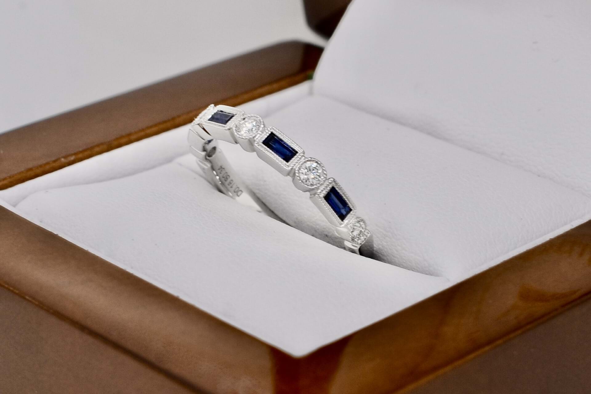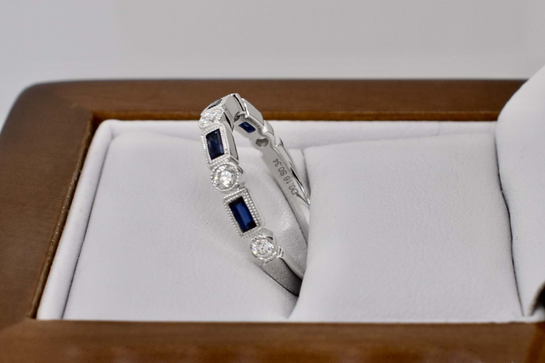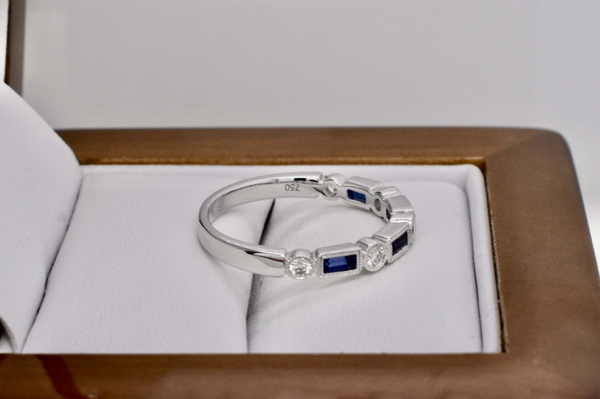 SOLD 18ct White Gold 0.34ct Australian Blue Sapphire & 0.16ct Diamond Deco Style Band (M)