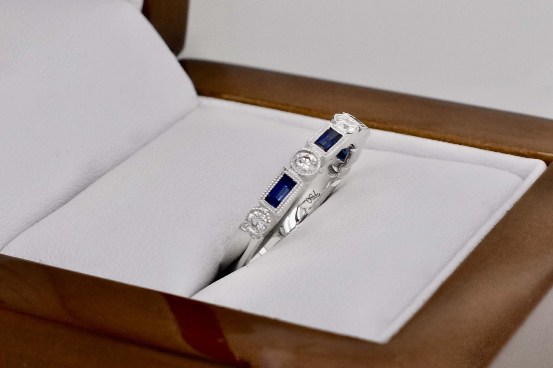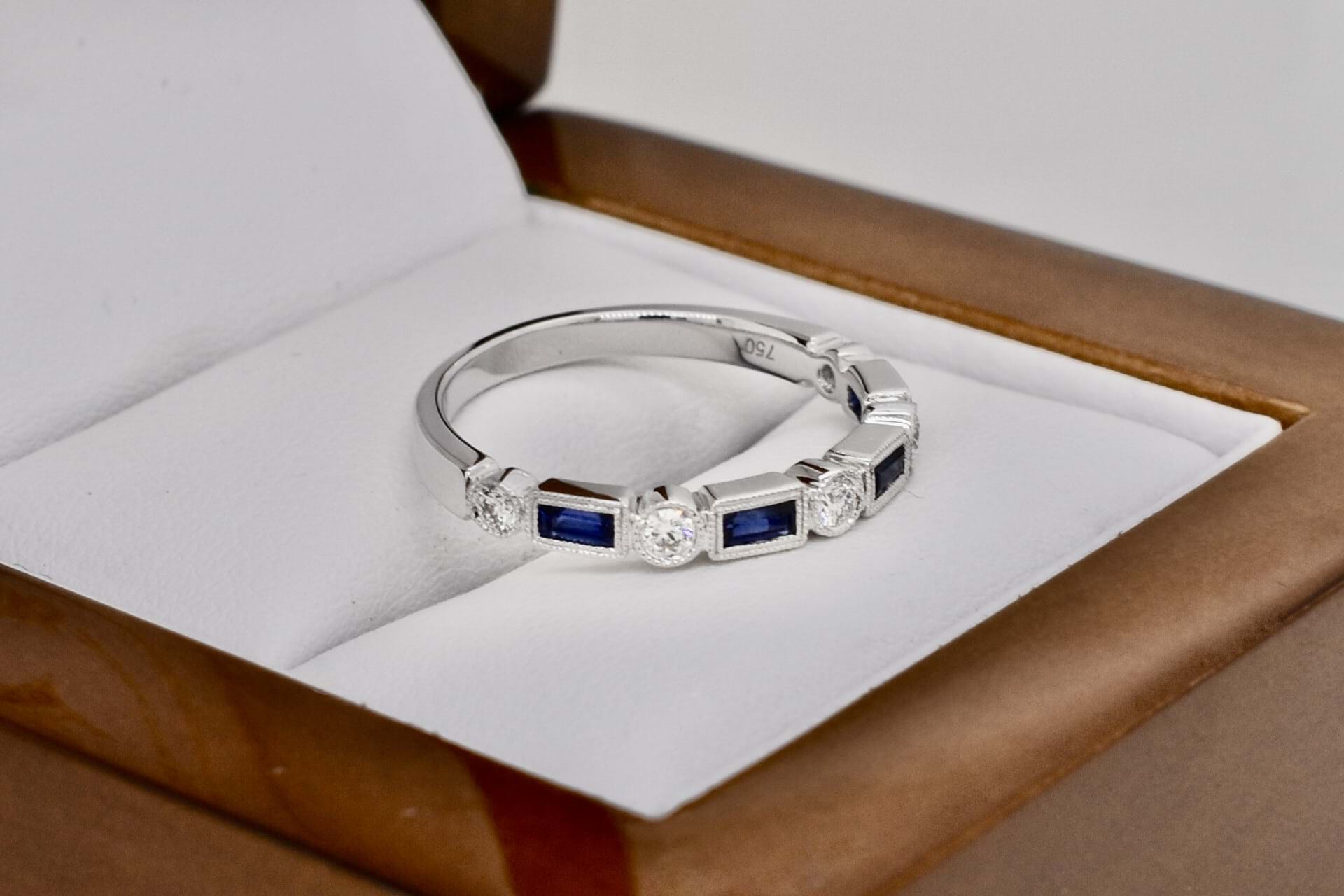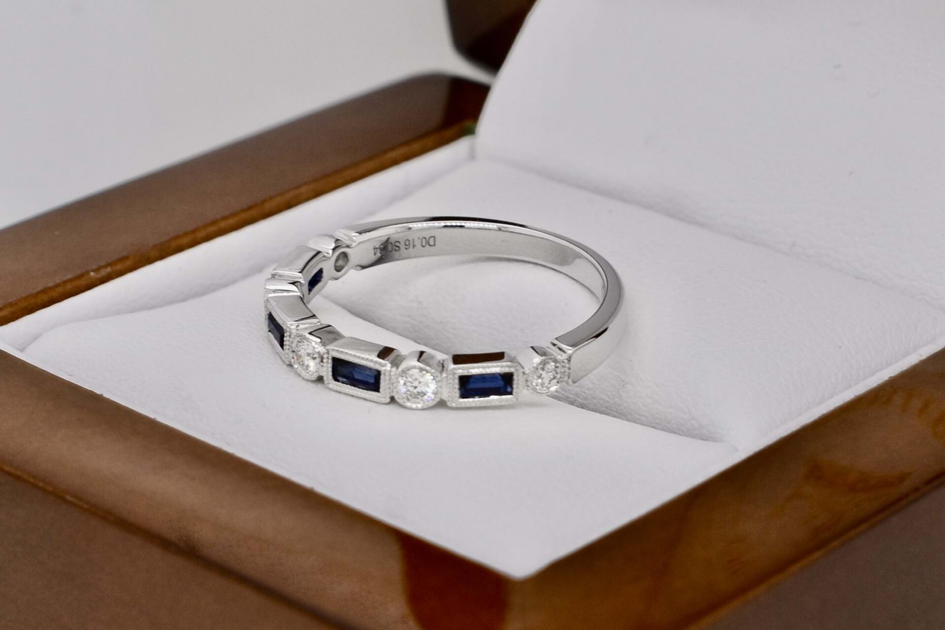 SOLD 18ct White Gold 0.34ct Australian Blue Sapphire & 0.16ct Diamond Deco Style Band (M)
