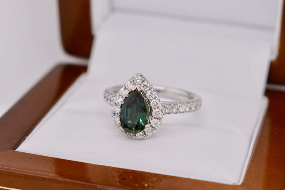 SOLD 18ct White Gold 1.63ct Teal Sapphire & 0.61ct Diamond Ring