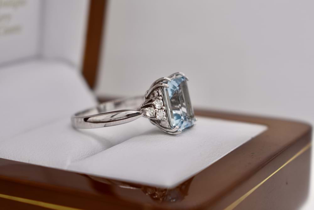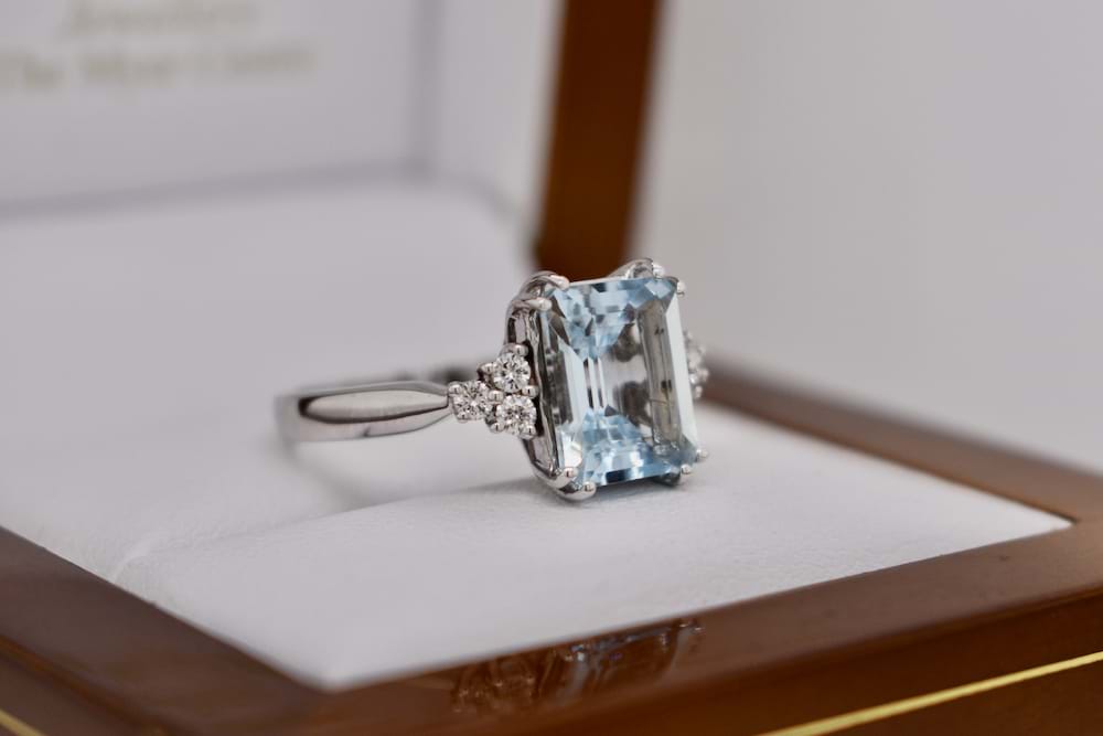 SOLD 18ct White Gold 3.05ct Aquamarine & 0.20ct Diamond Ring