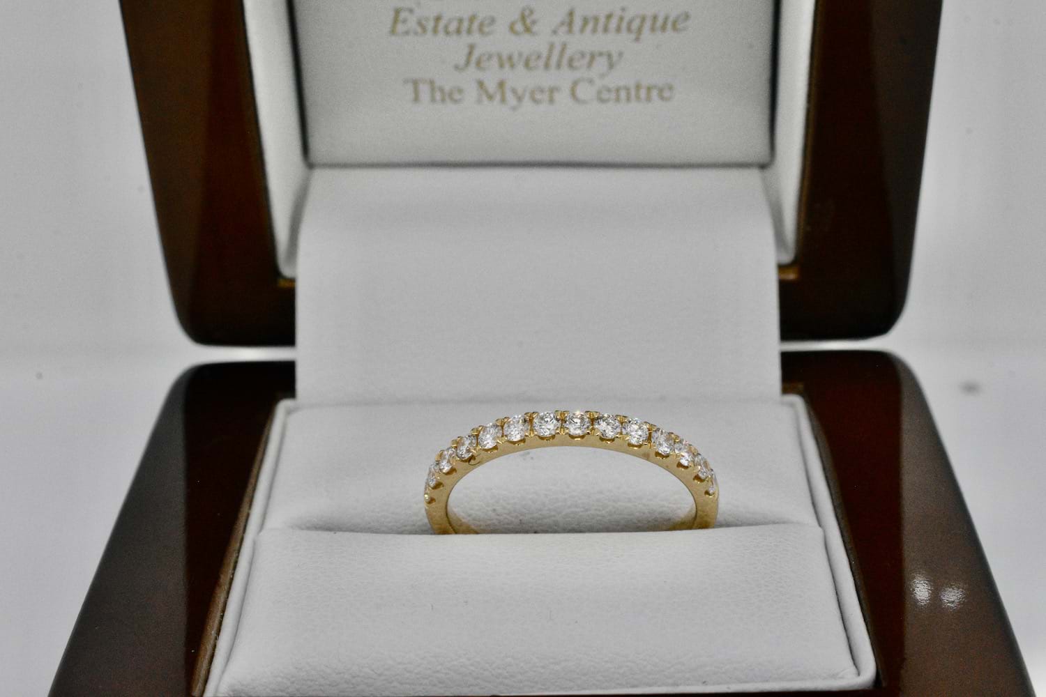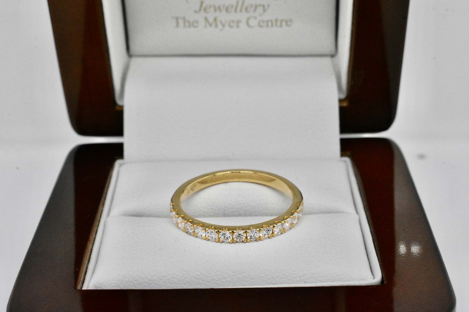 Classic and stunning 18ct yellow gold diamond band featuring 14 round brilliant cut diamonds cut down claw set totalling 0.40cts FGVS. Finger size N. Independent Valuation Supplied