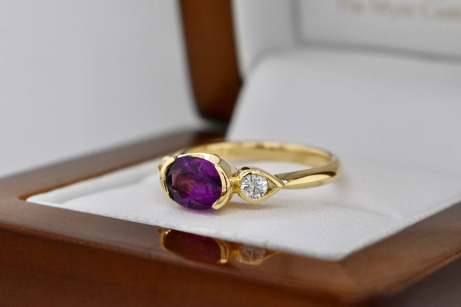 SOLD 18ct Yellow Gold 1.50ct Purple Garnet & 0.21ct Diamond Ring