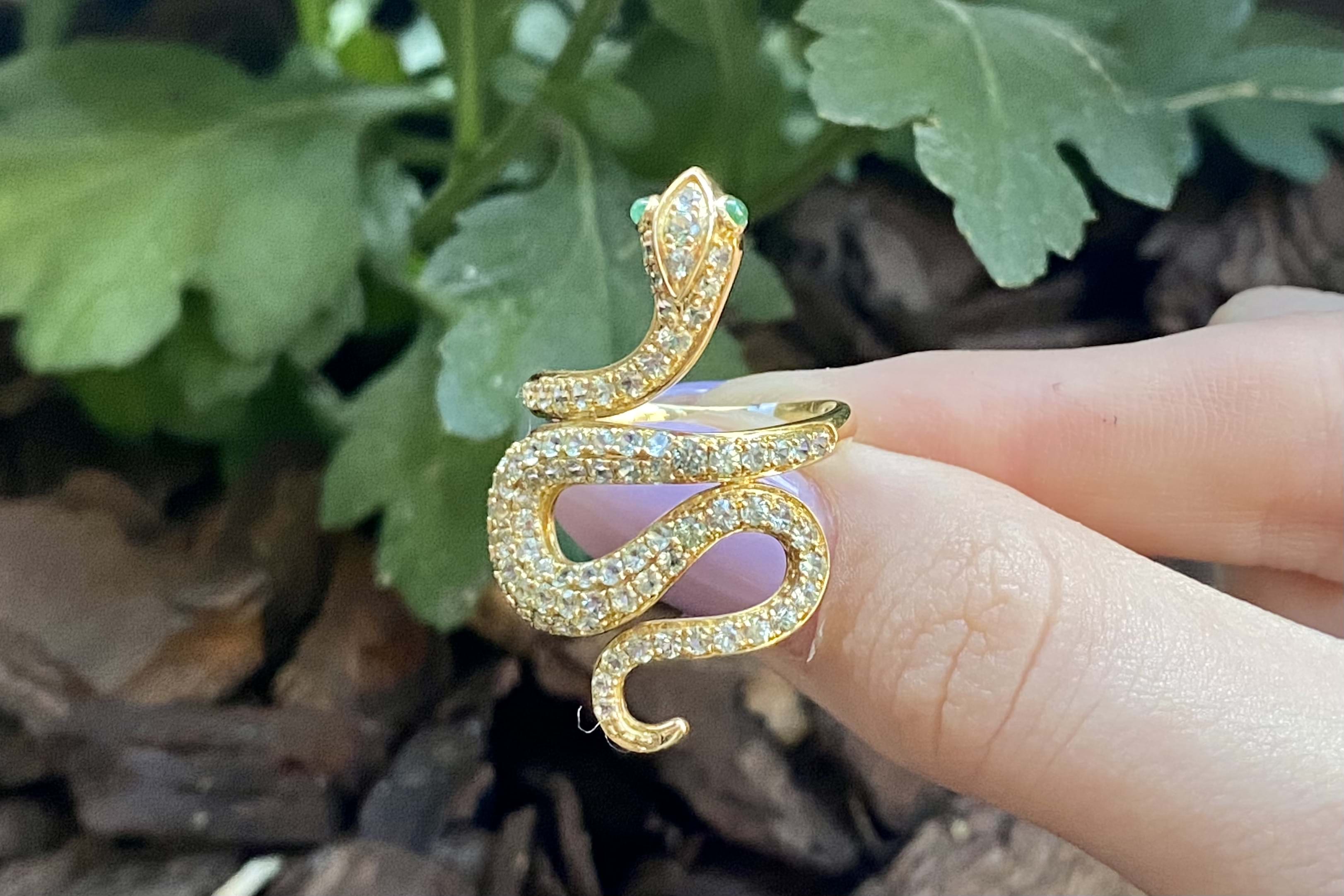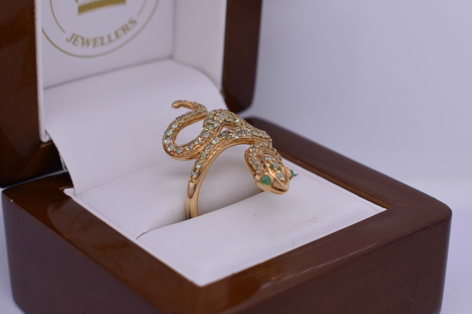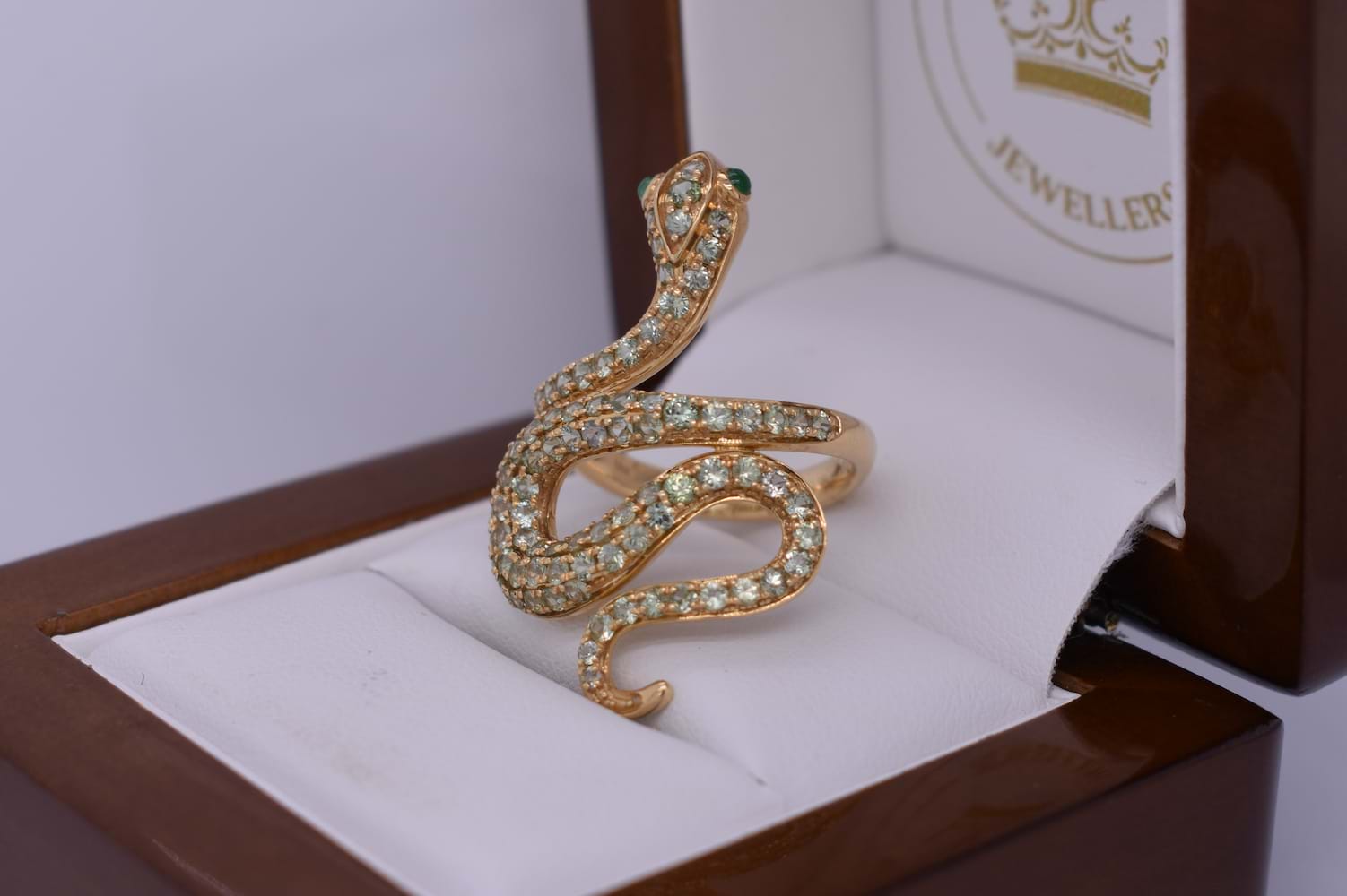 SOLD 18ct Yellow Gold 1.98ct Green Sapphire & 0.05ct Emerald Snake Ring (M+)