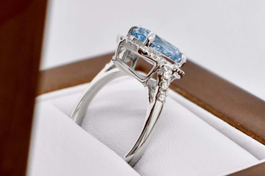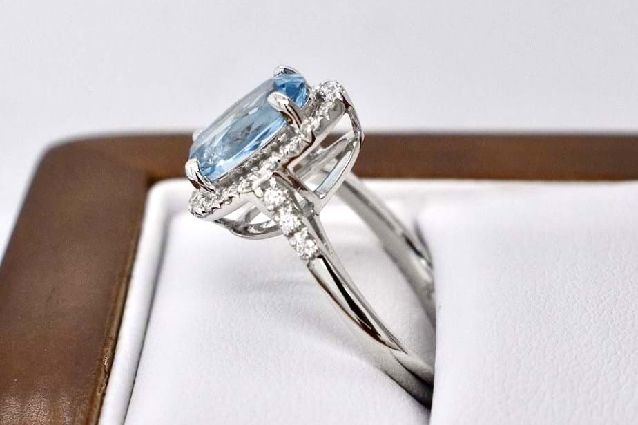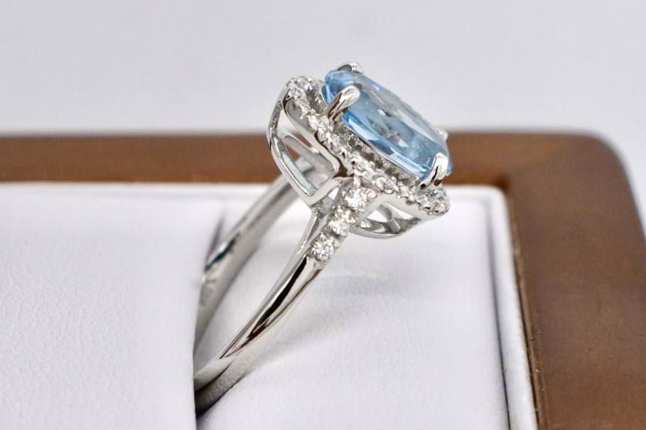 SOLD 9ct White Gold 1.92ct Aquamarine & 0.22ct Diamond Halo Ring (N+)