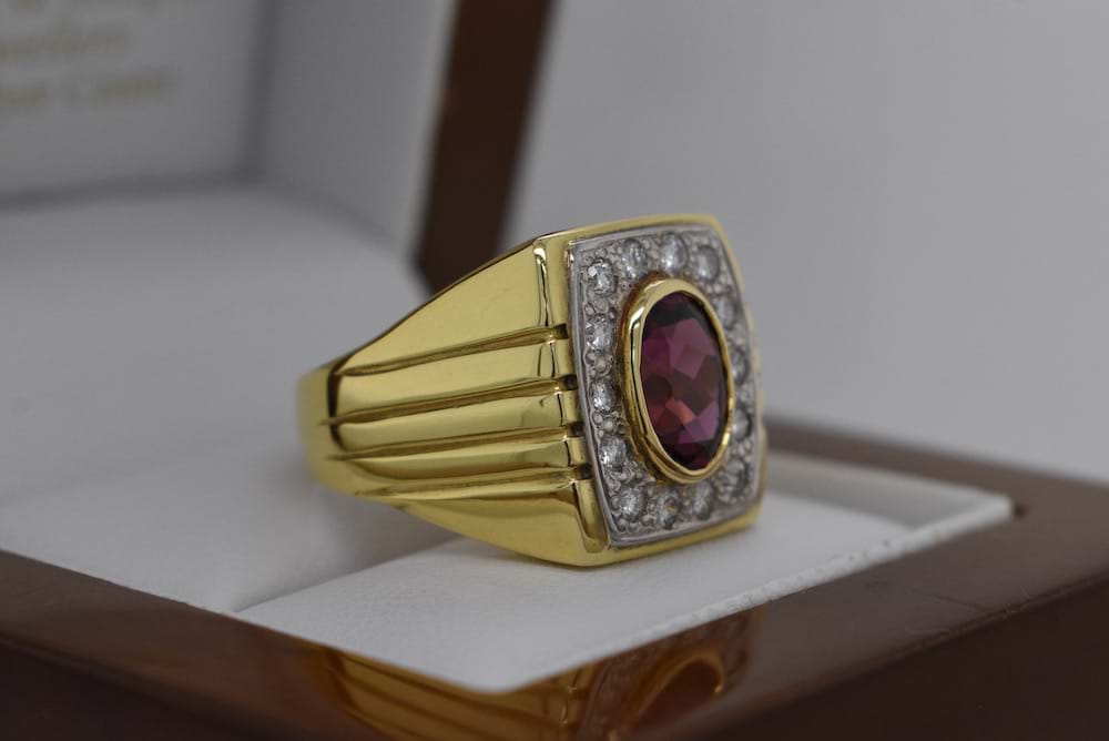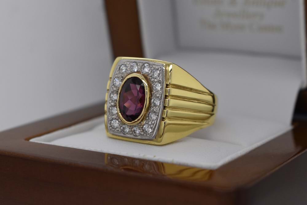 Handmade 18ct Rhodolite Garnet Gents Ring