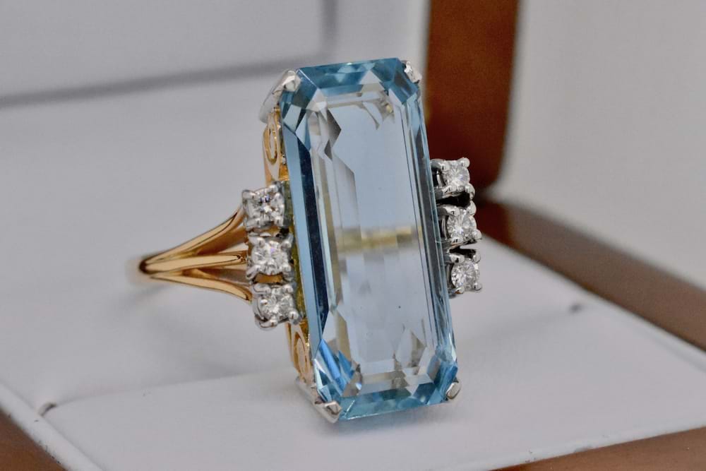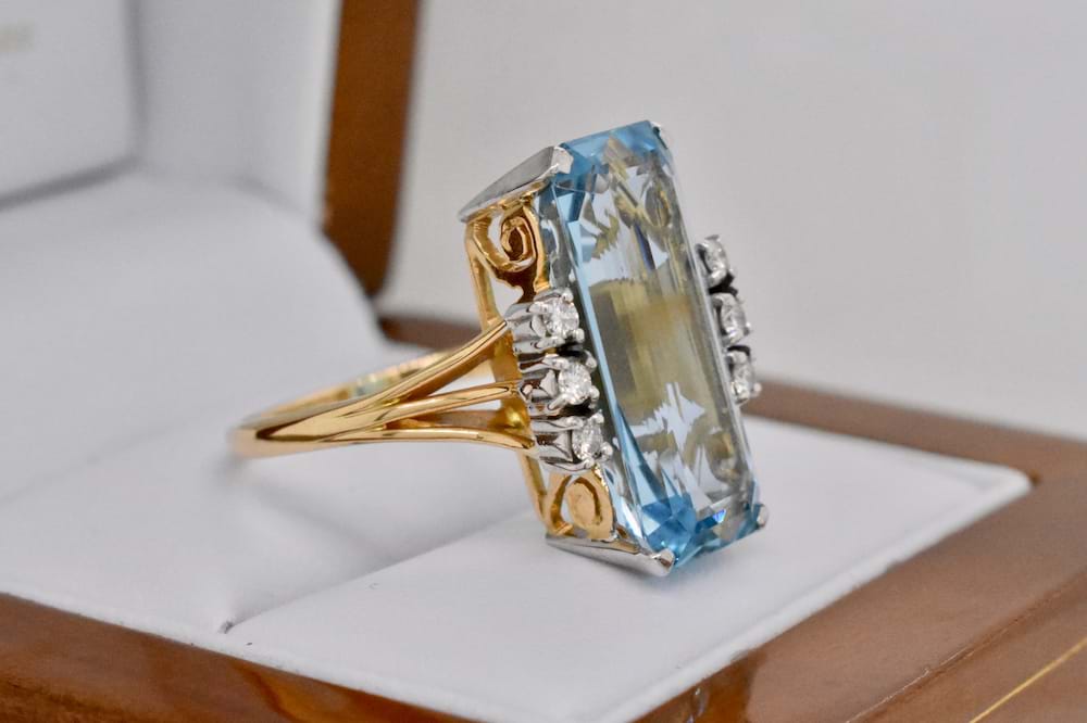 SOLD 18ct & Palladium 8.06ct Aquamarine & Diamond Ring