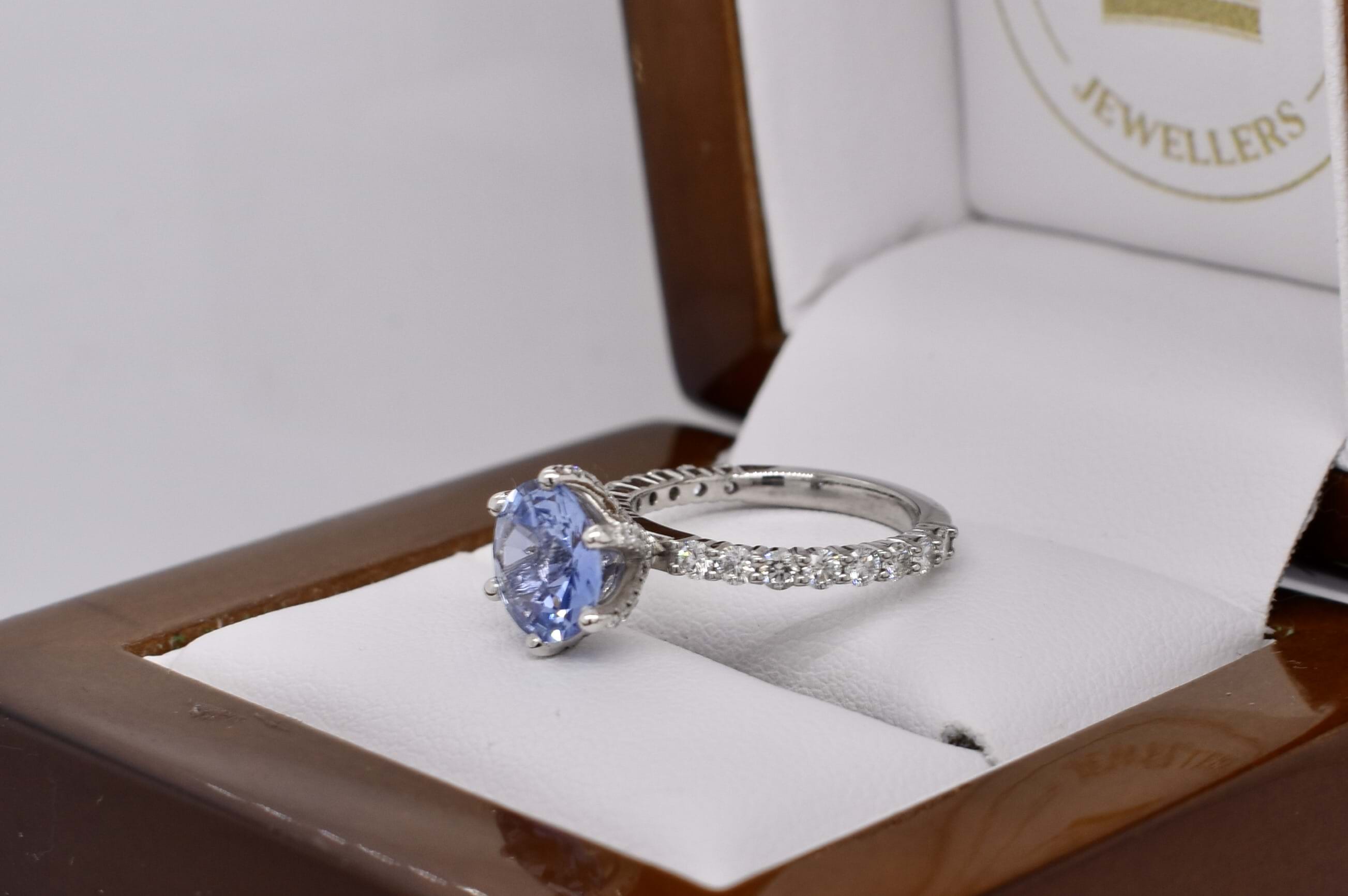 sold 18ct White Gold 2.08ct Ceylon Sapphire & 0.63ct Diamond Ring (G+)
