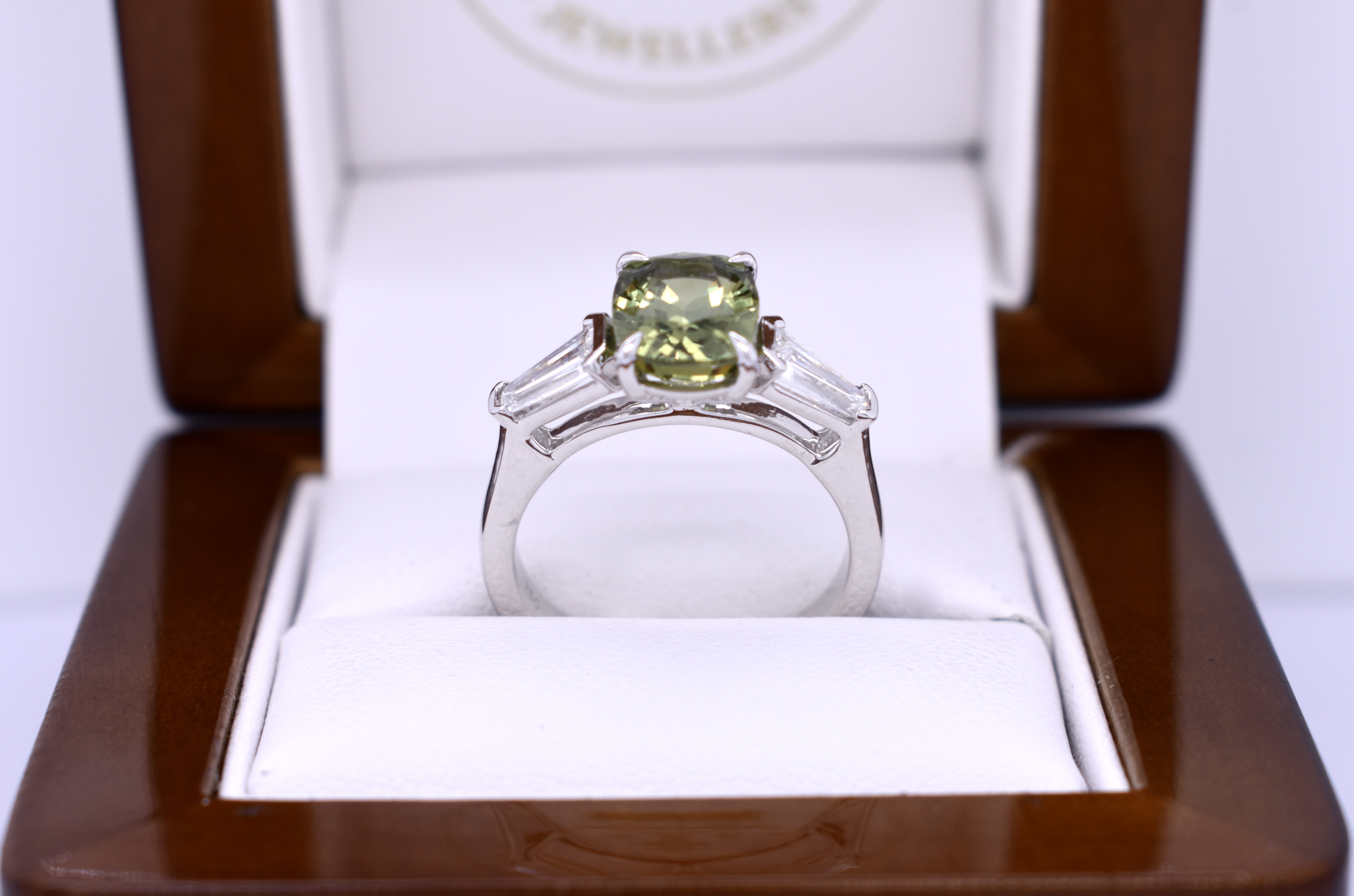 SOLD 18ct White Gold 2.91ct Green Sapphire & 0.61ct DE/VVS2-IF Shield Diamond Ring (M+)