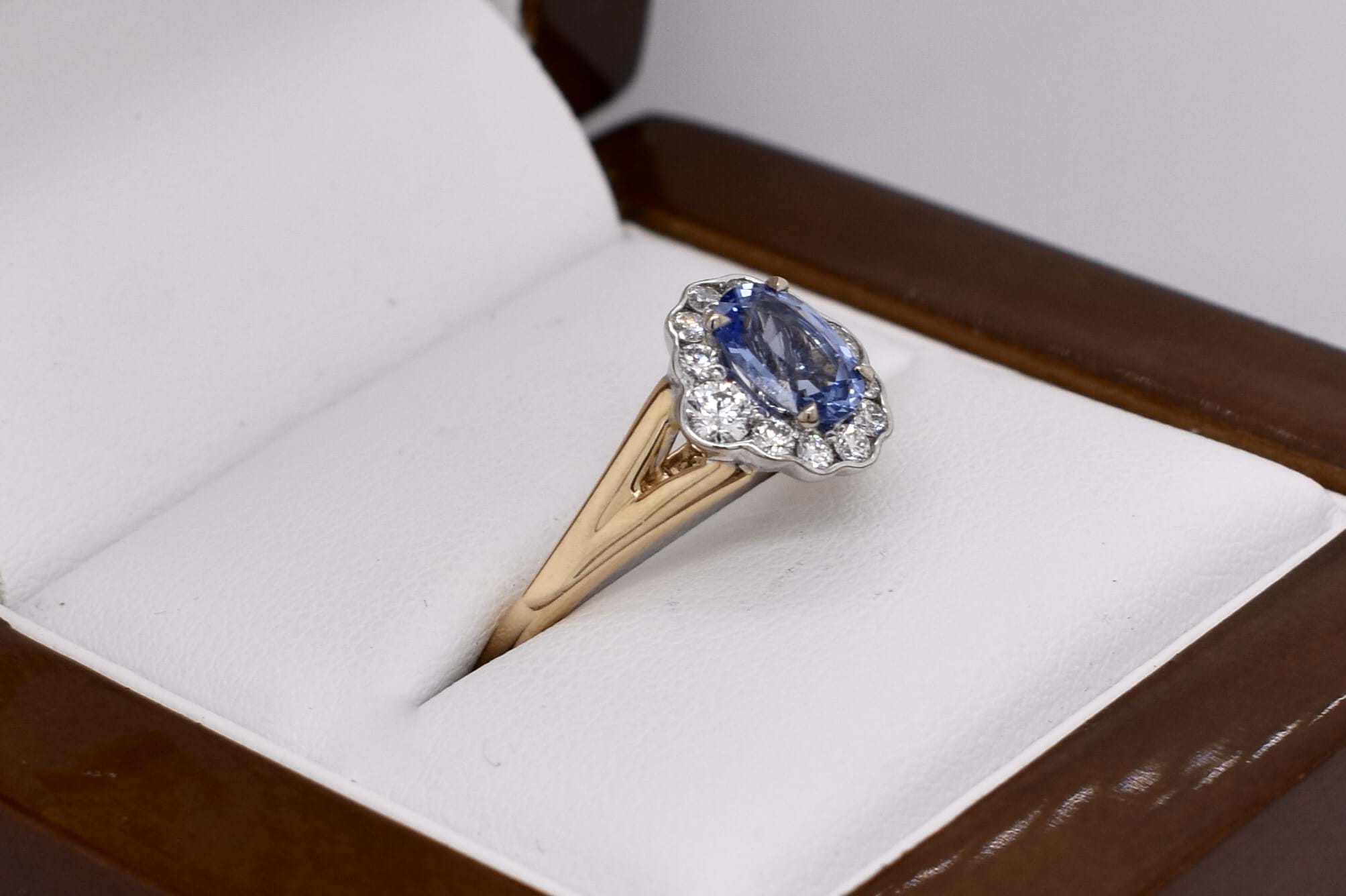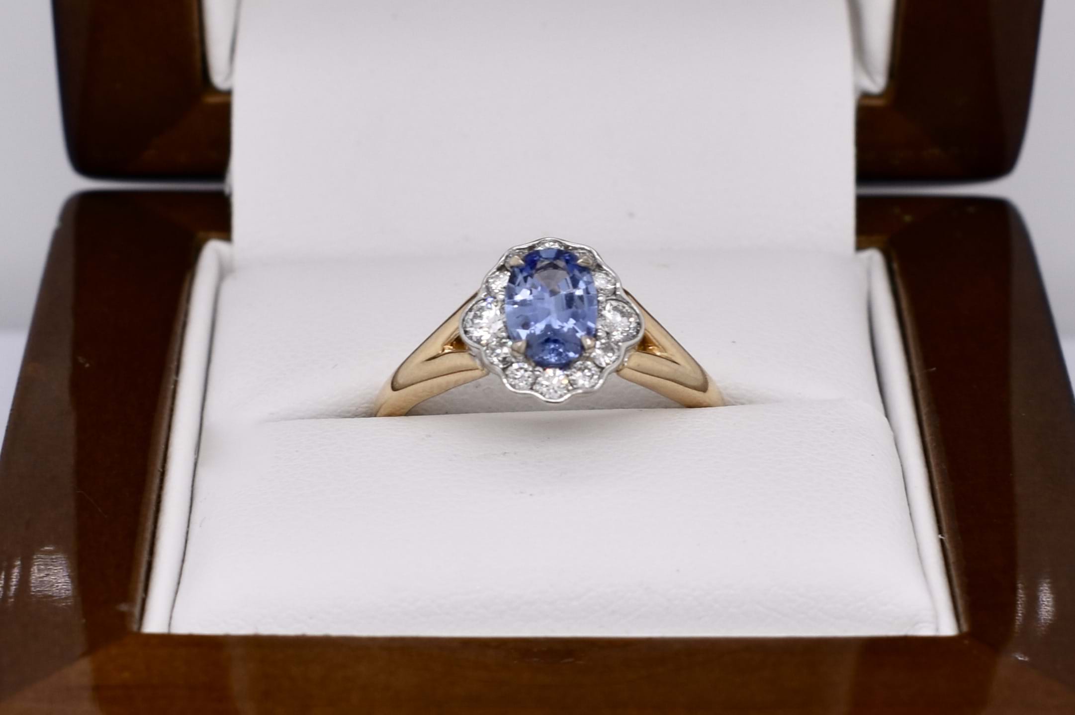 SOLD 18ct Yellow Gold 0.85ct Ceylon Sapphire & 0.36ct Diamond Ring (M+)