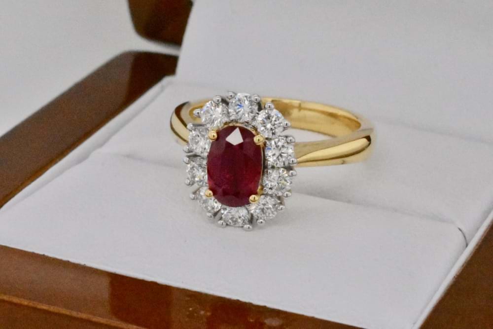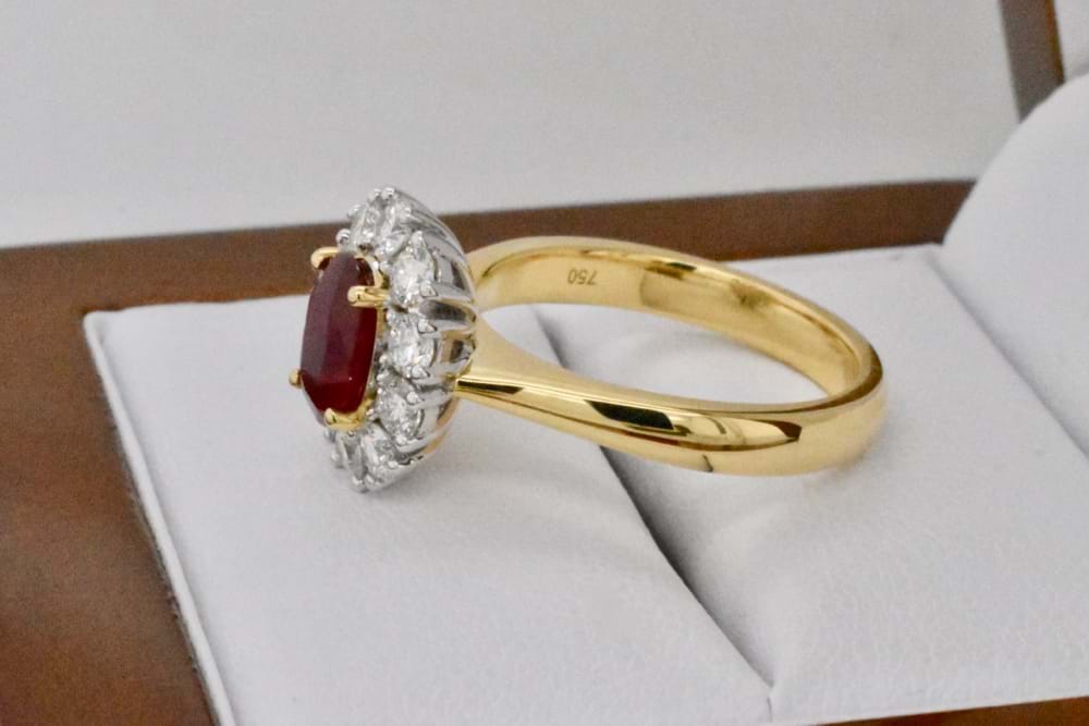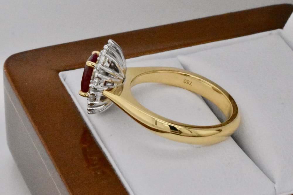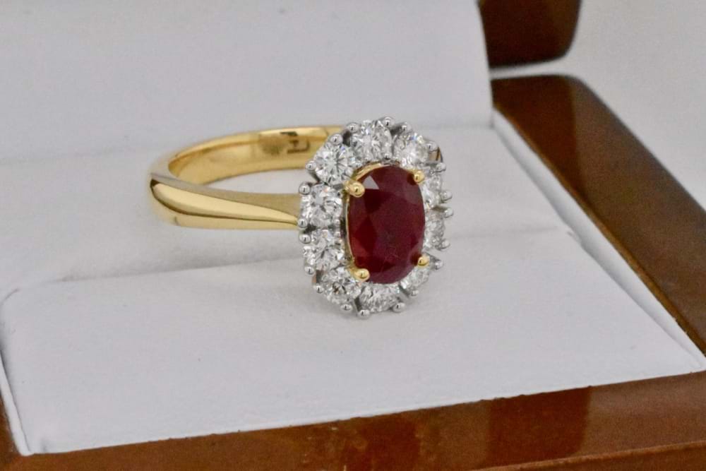 SOLD 18ct Yellow Gold 1.17ct Ruby & 0.81ct Diamond Cluster Ring