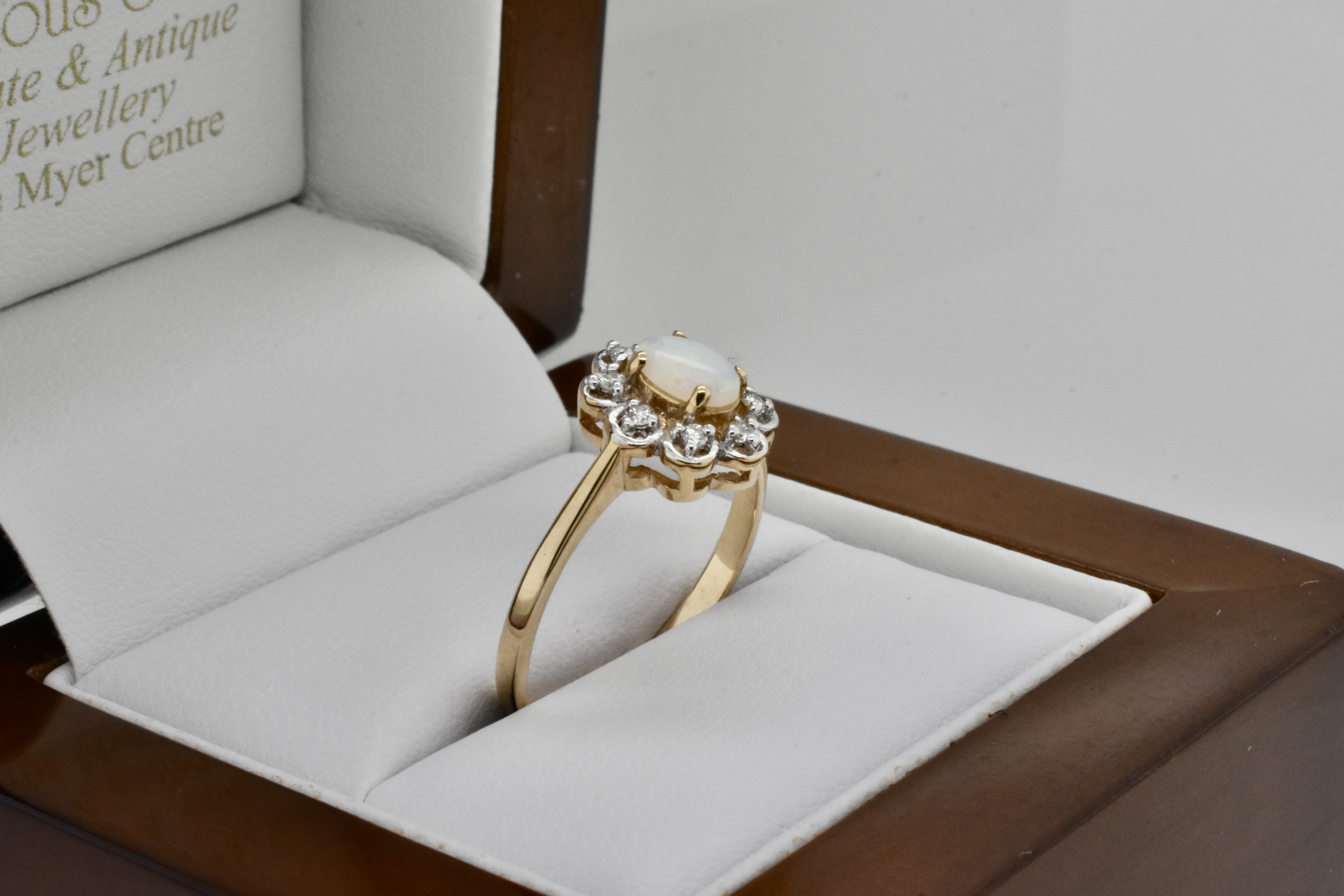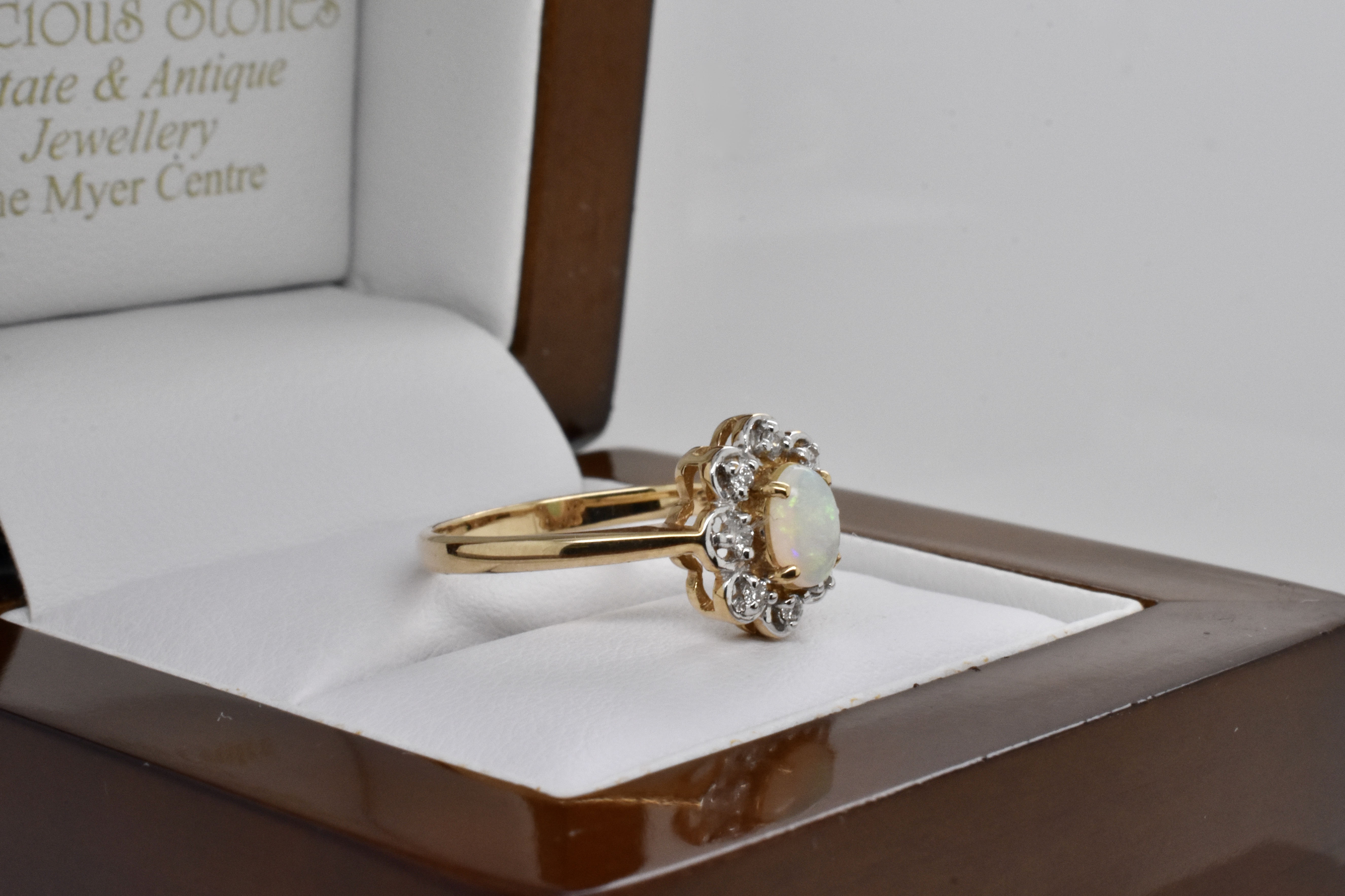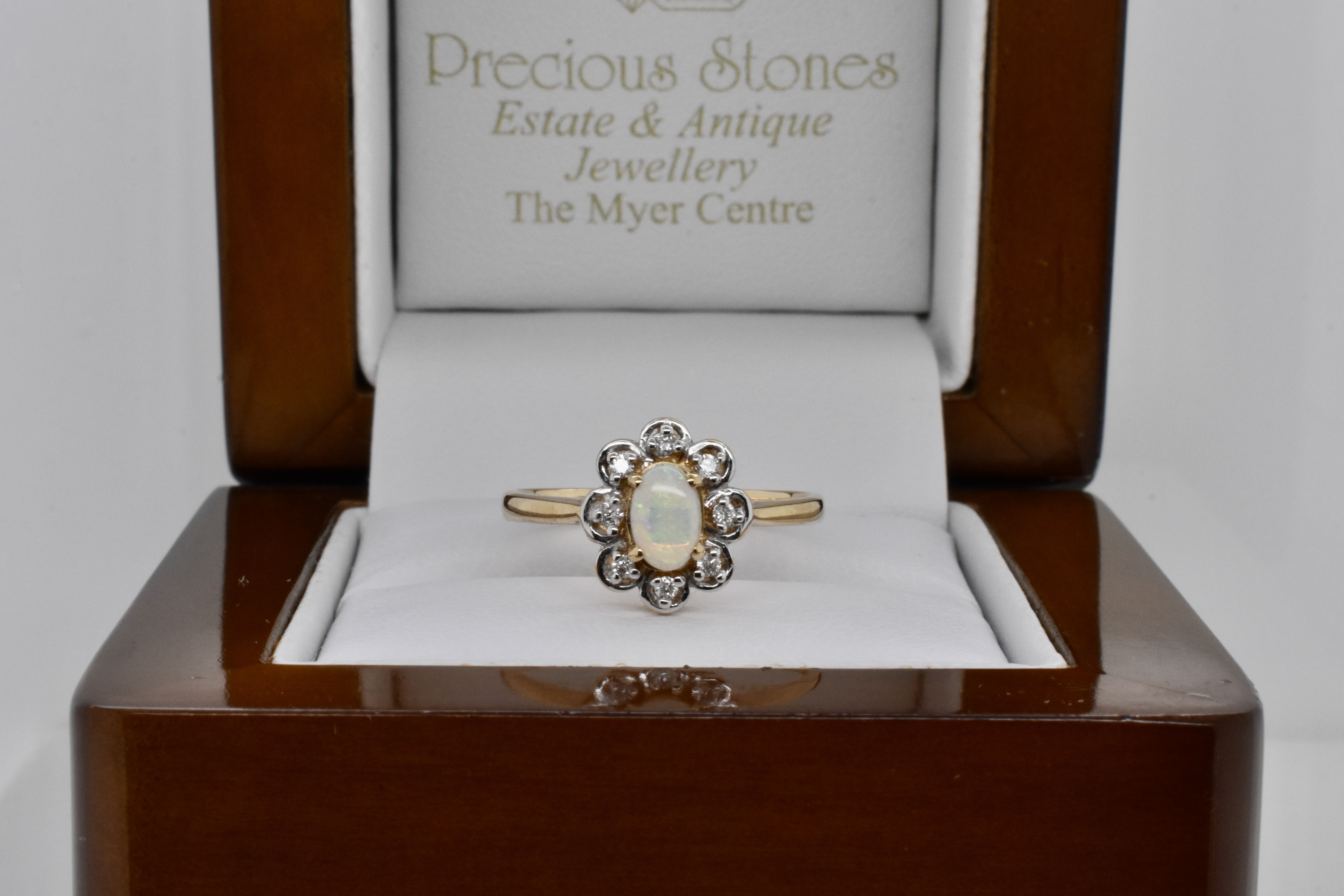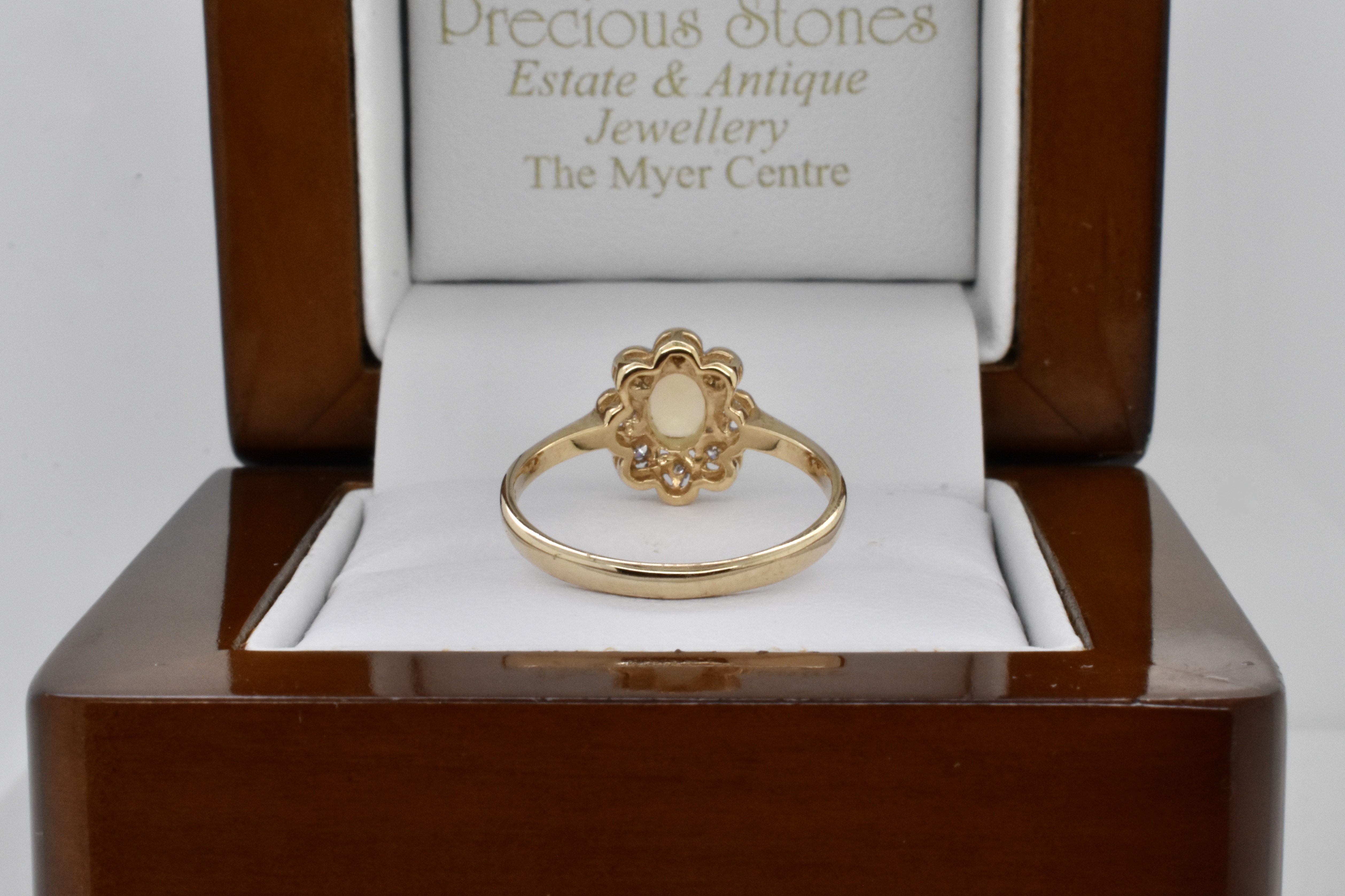 SOLD 9ct Yellow Gold Opal & Diamond Daisy Ring