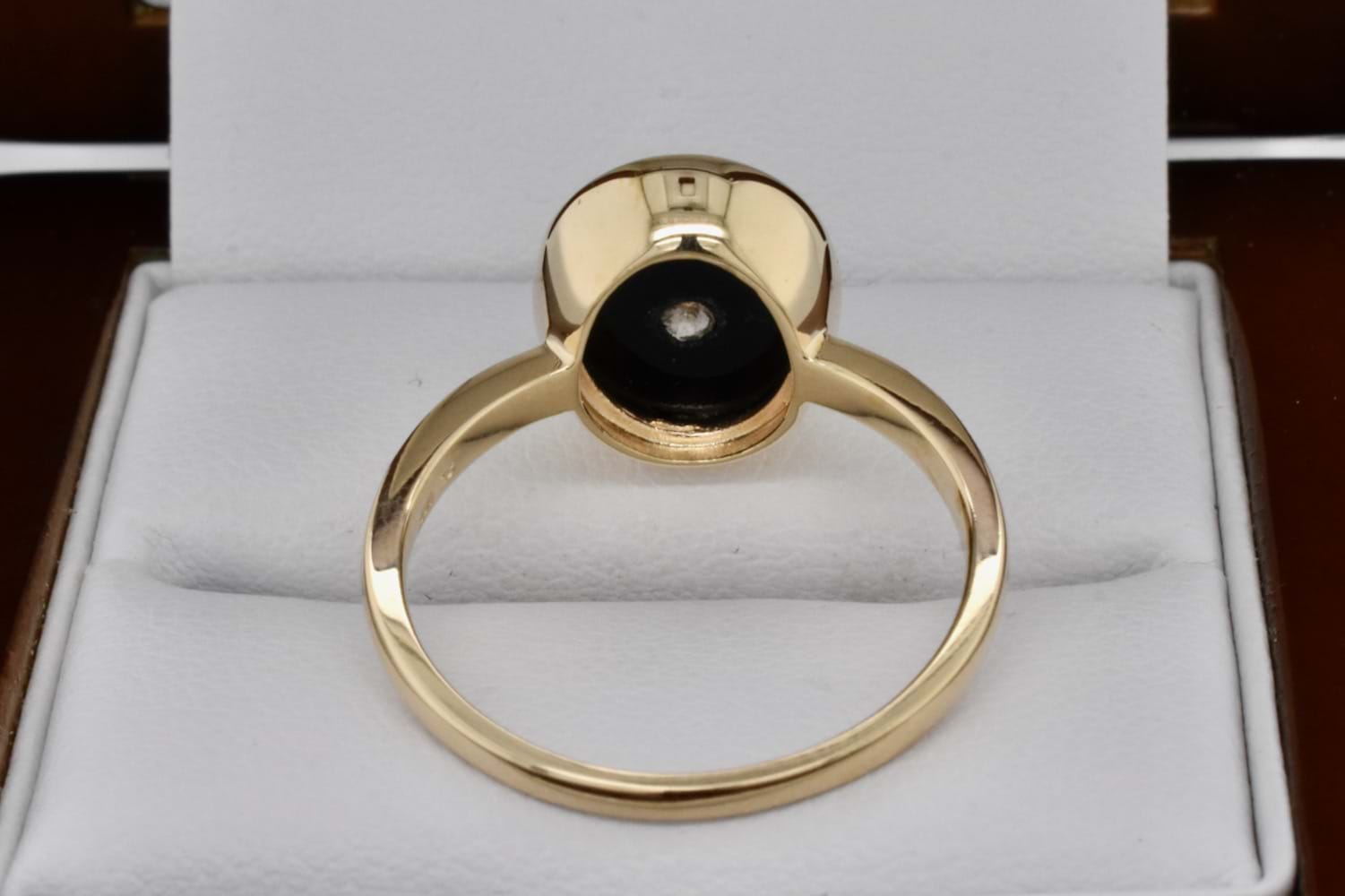 SOLD 9ct Yellow Gold Oval Onyx & Diamond Ring ( R)