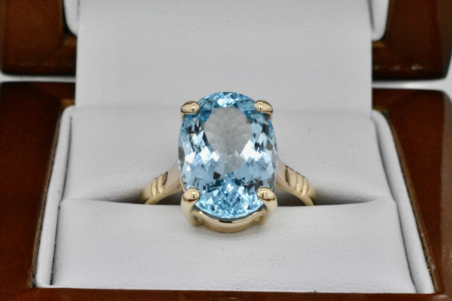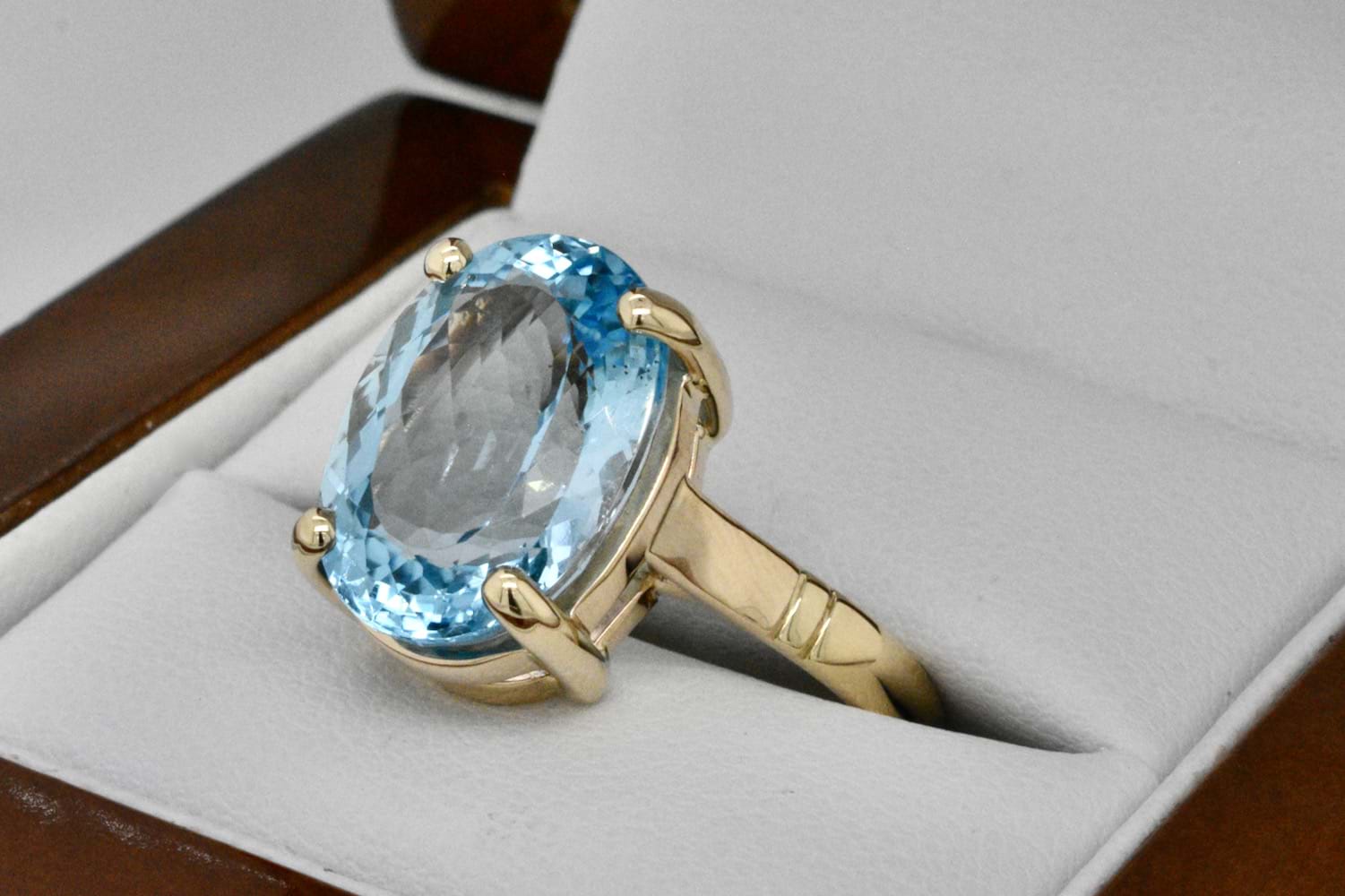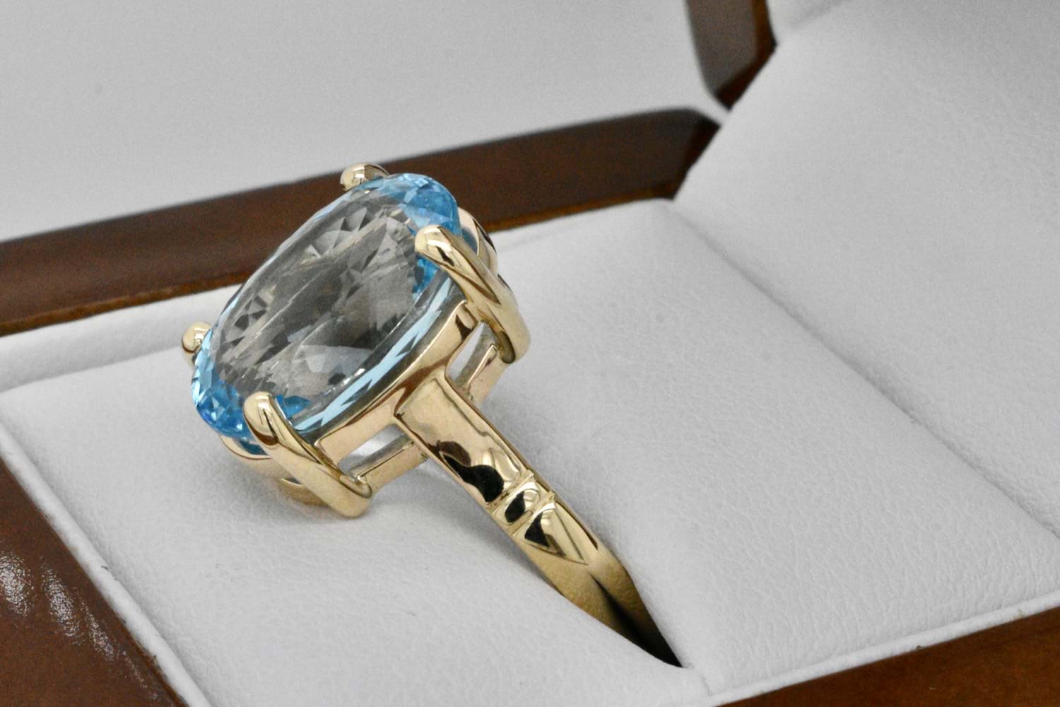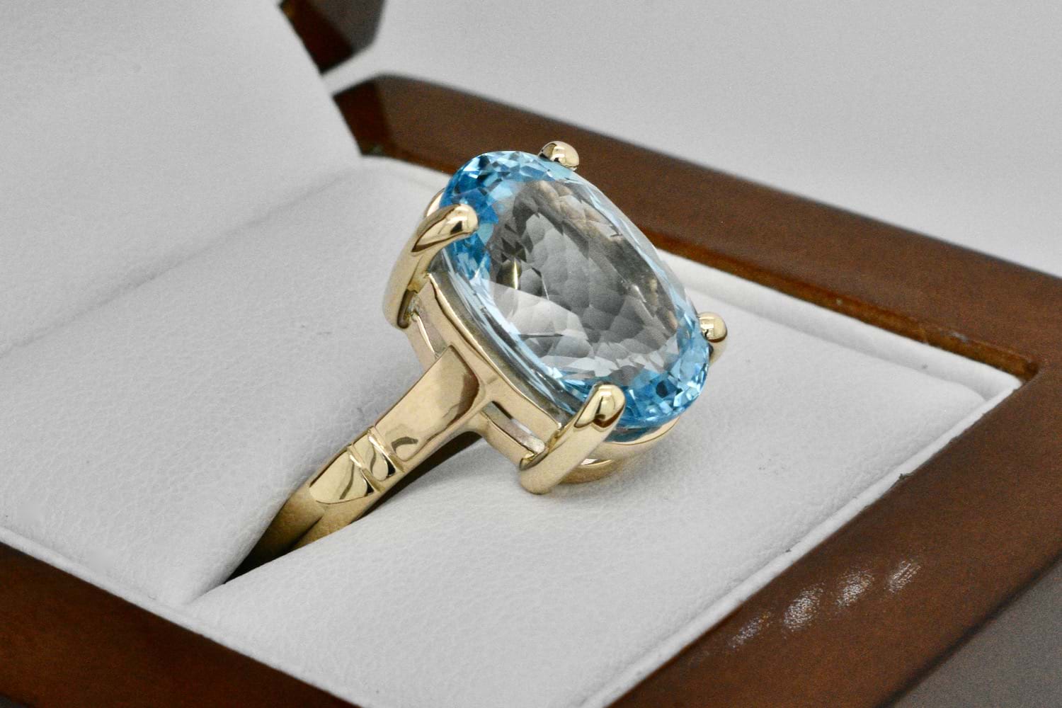 SOLD Handmade 9ct Yellow Gold 16x10mm Sky Blue Topaz Ring