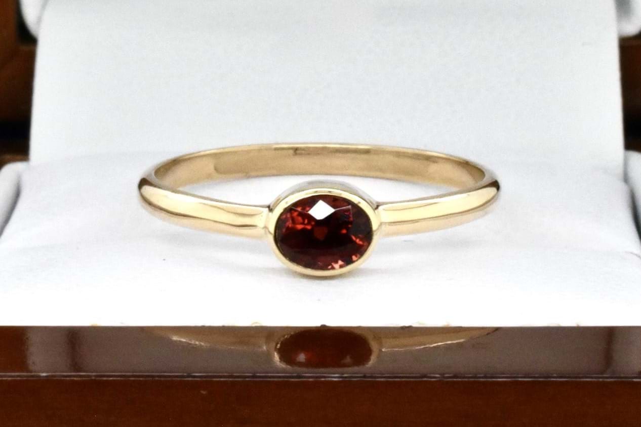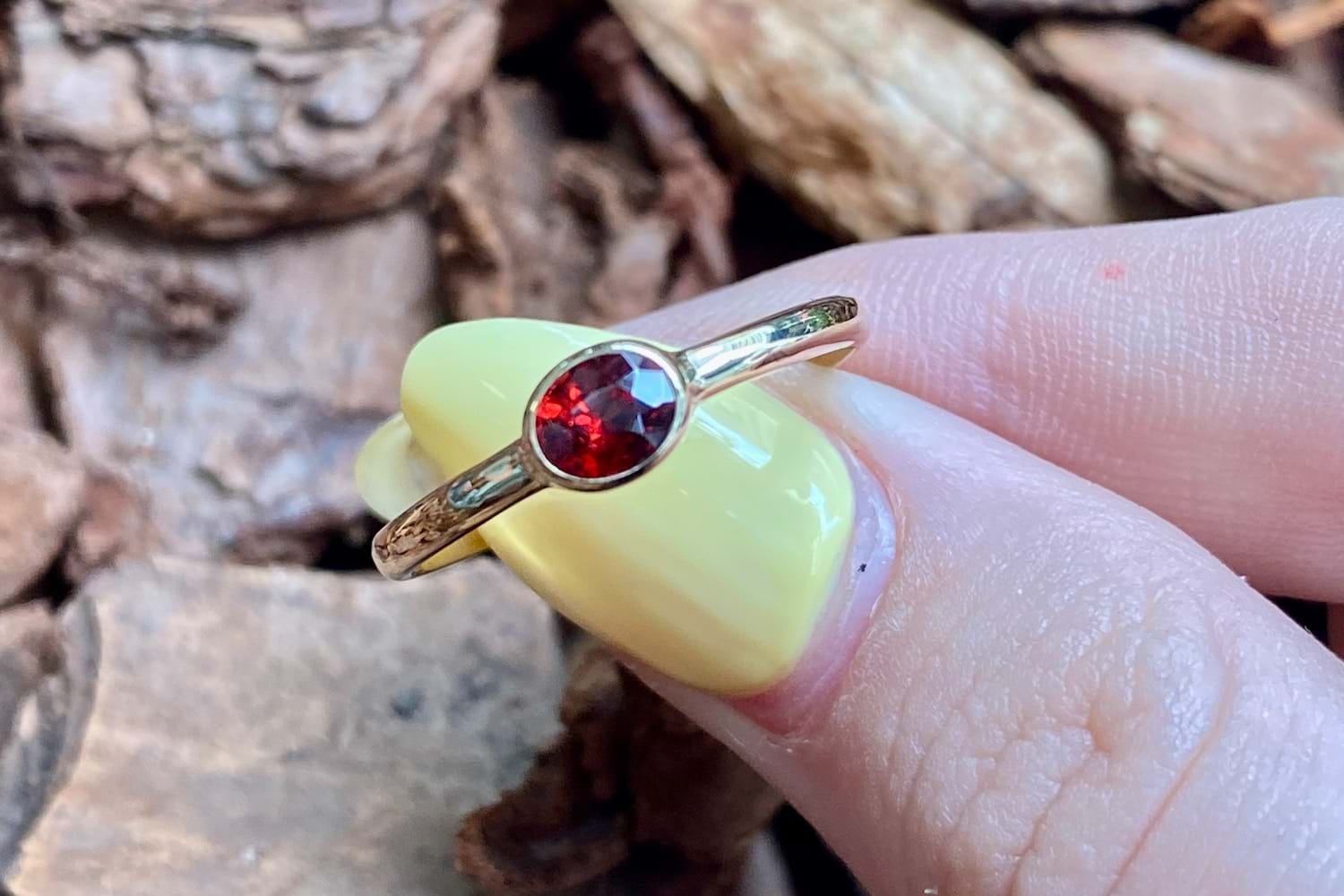 SOLD Handmade 9ct Yellow Gold 6 x 5mm Oval East/West Red Spinel Ring (Q)