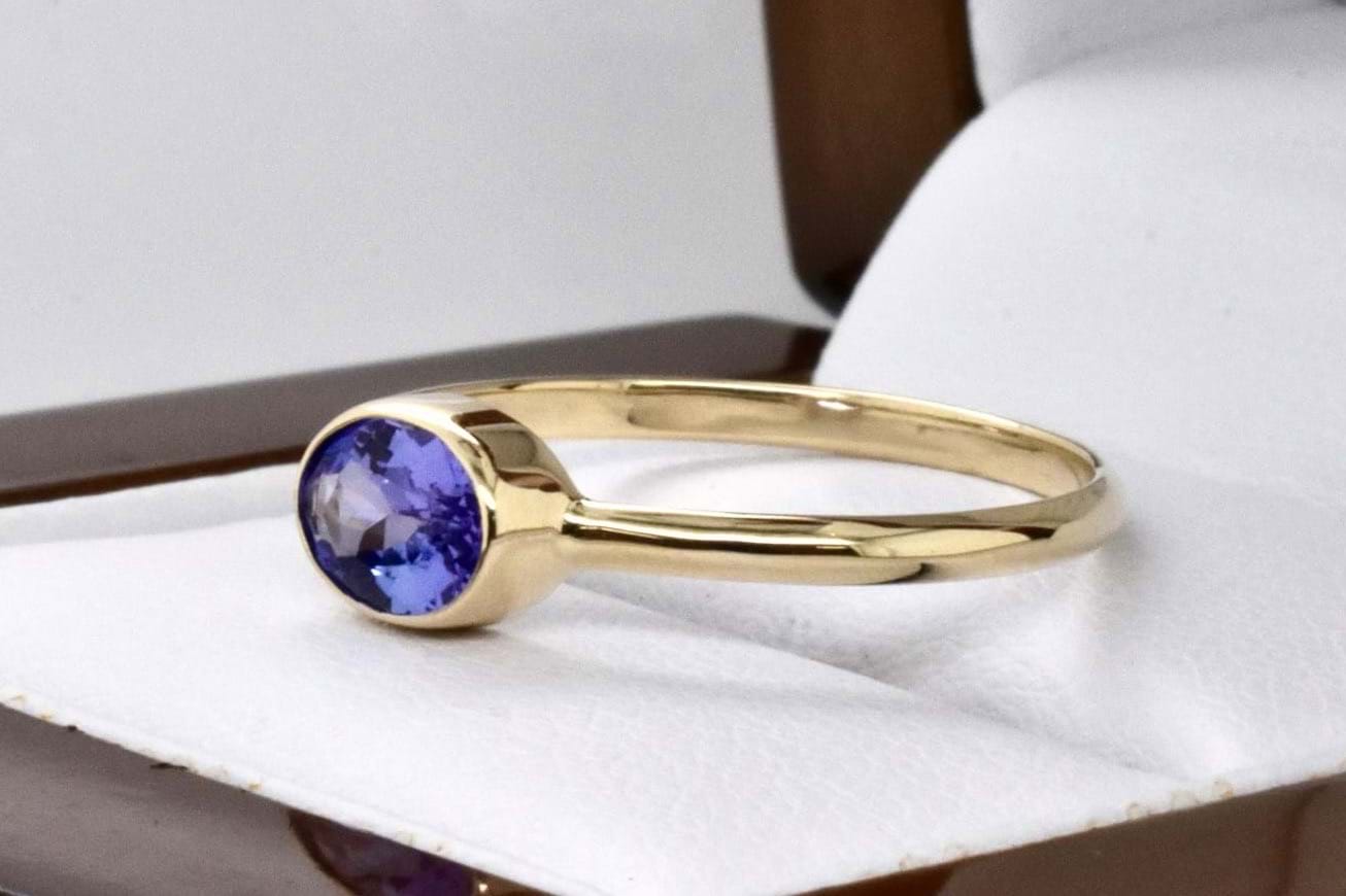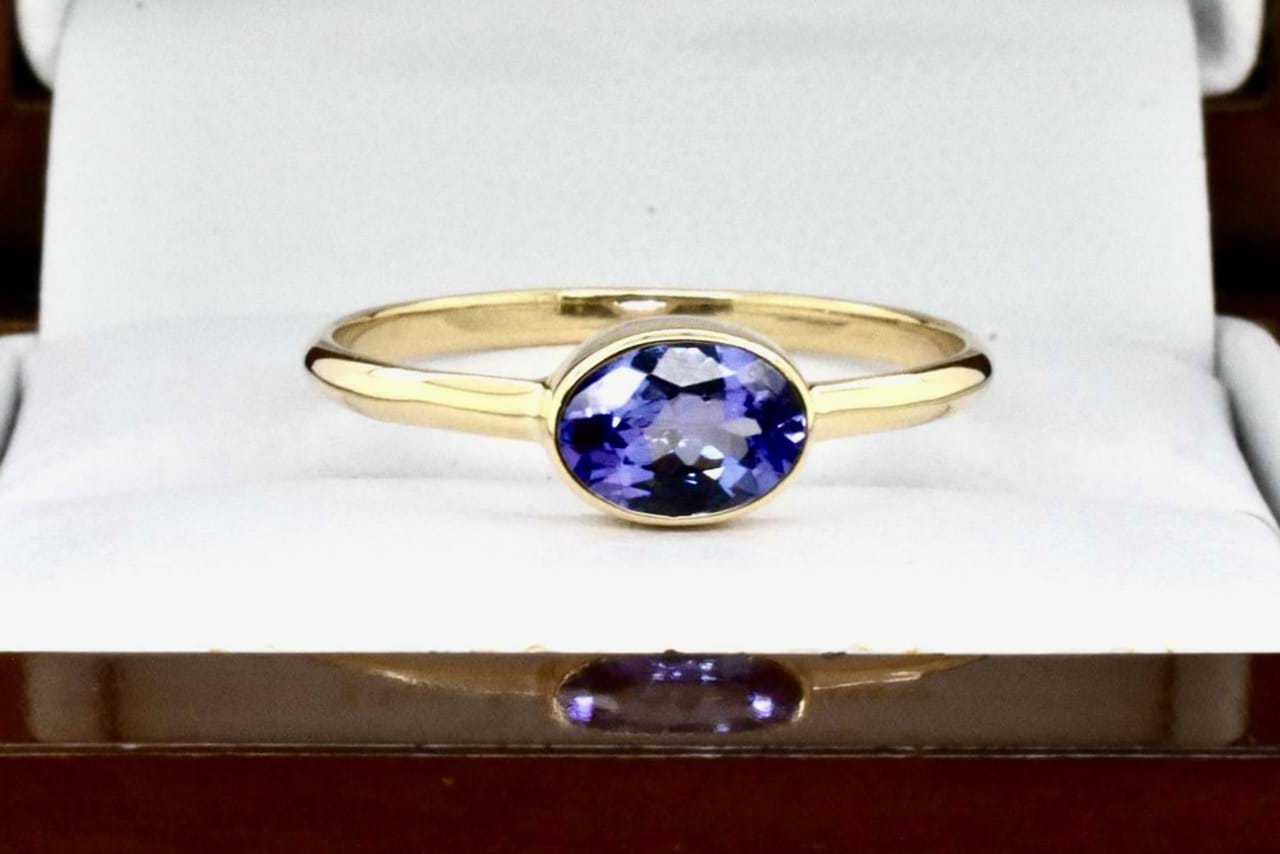 SOLD Handmade 9ct Yellow Gold 7.5 x 6mm Oval East/West Tanzanite Ring (Q)