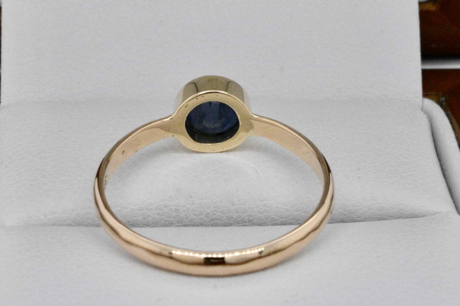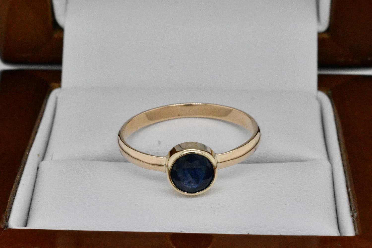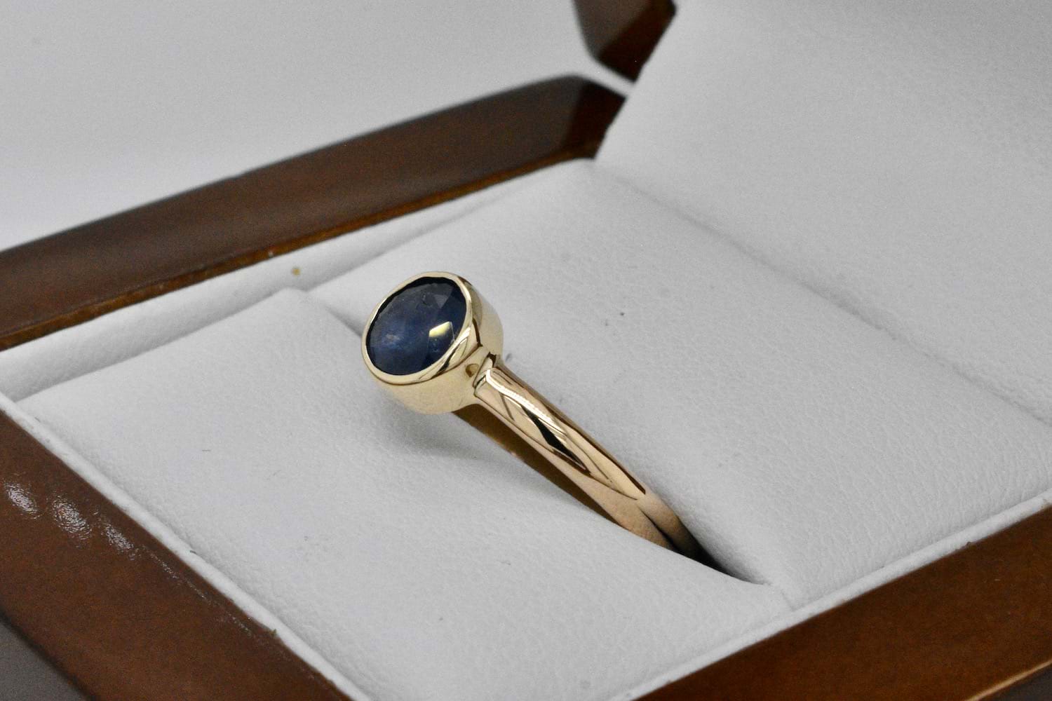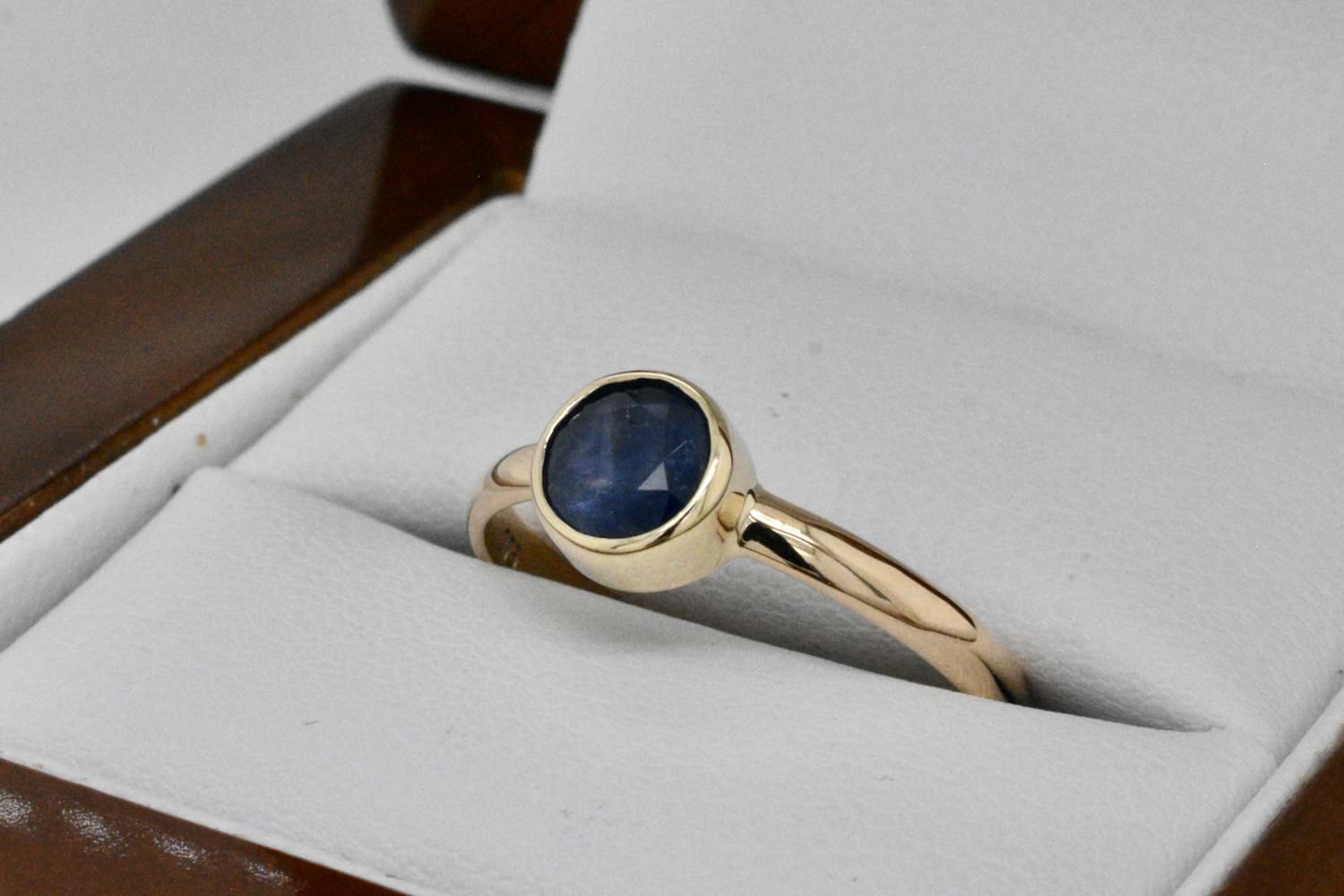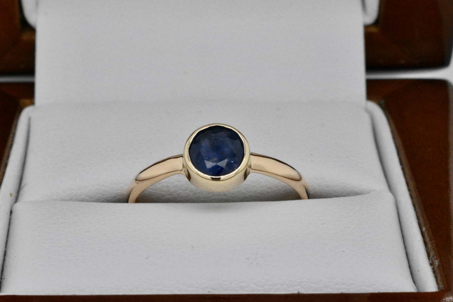 SOLD Handmade 9ct Yellow Gold 7mm Sapphire Bezel Set Ring