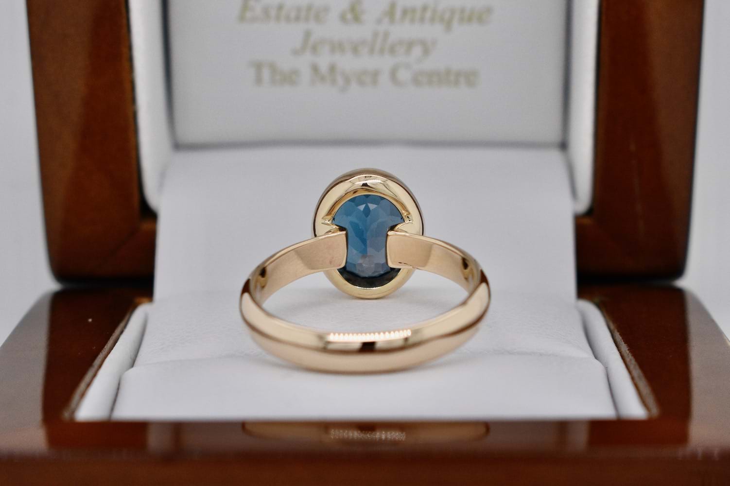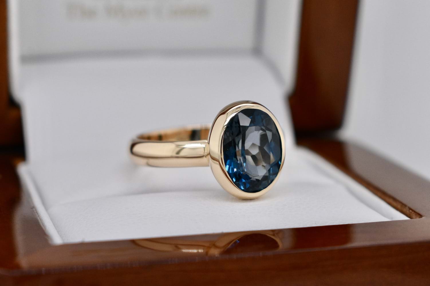 SOLD Handmade 9ct Yellow Gold Bezel Set 3.20ct London Blue Topaz Ring (O)