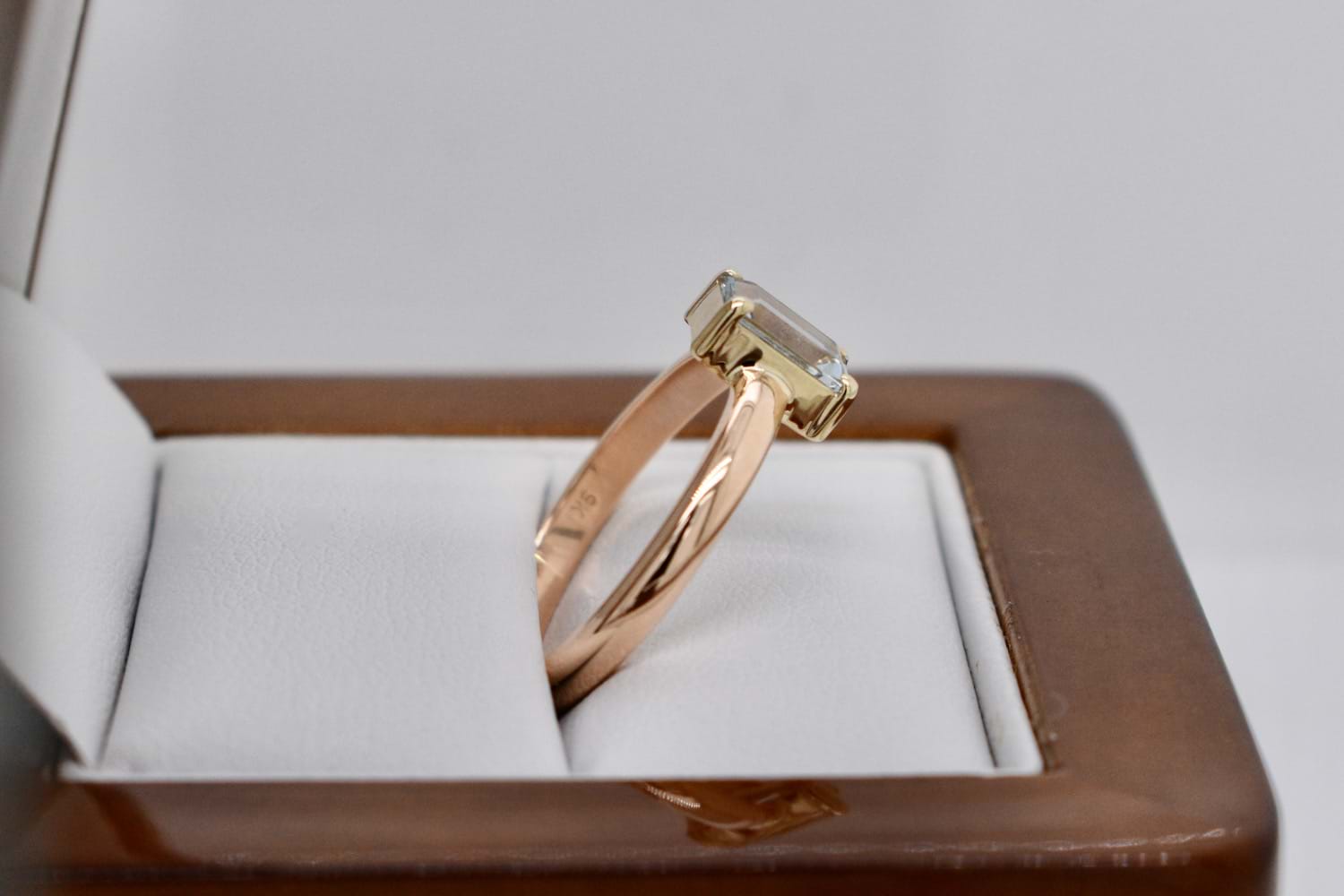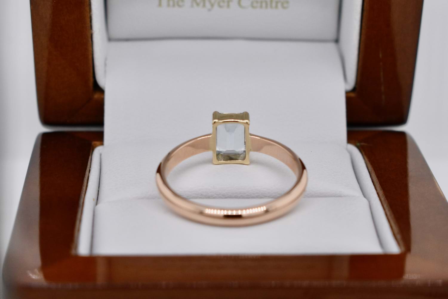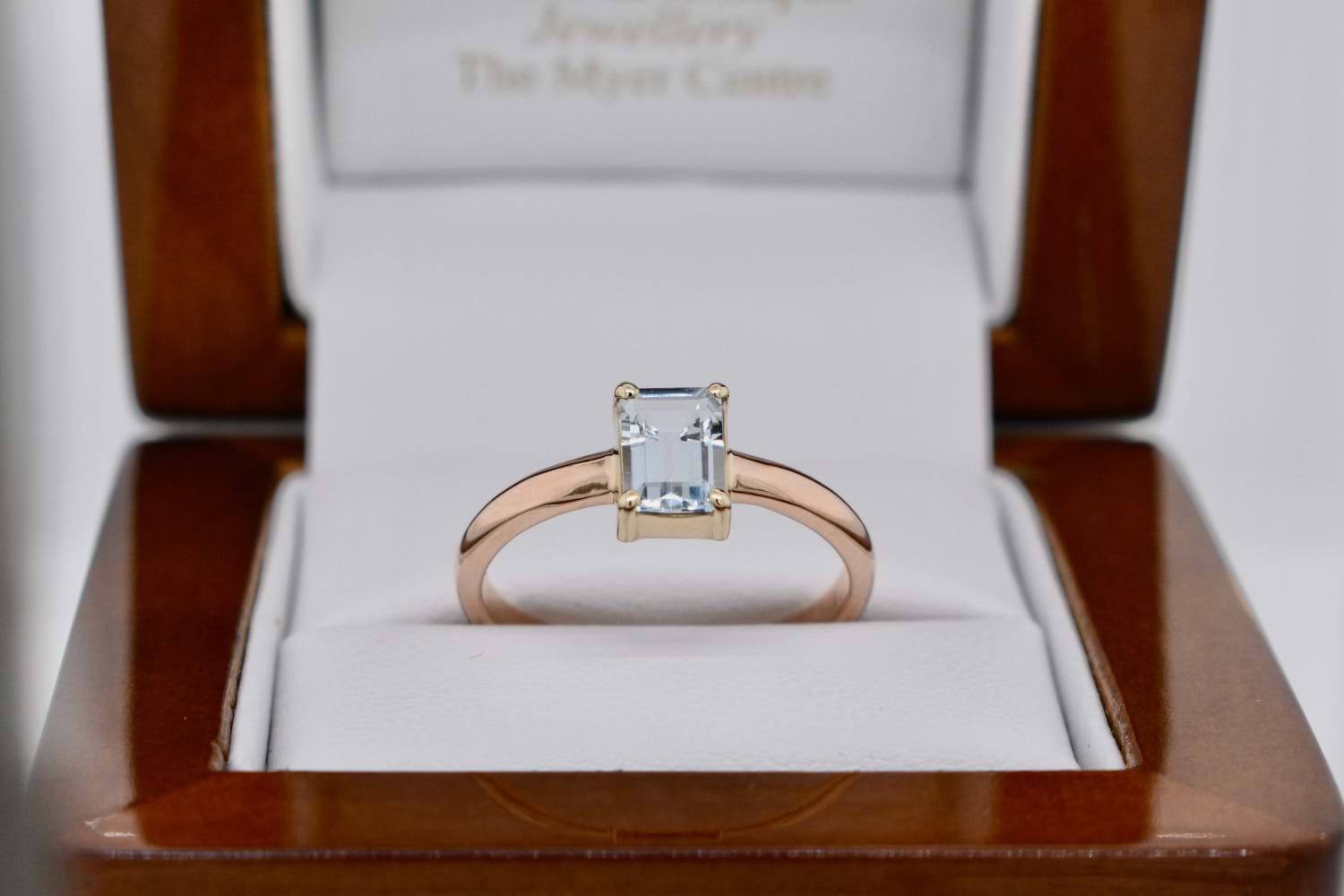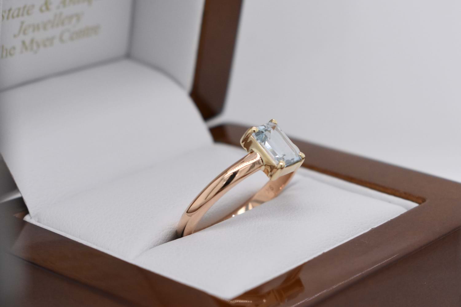 SOLD Handmade 9ct Yellow Gold Emerald Cut Aquamarine Ring (Q+)