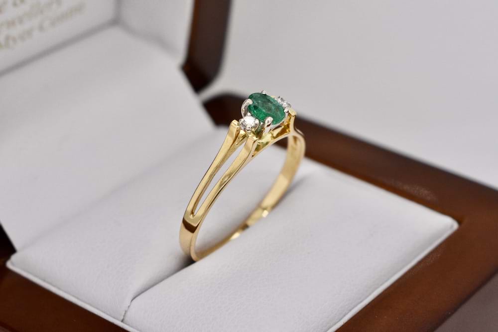 SOLD Vintage 18ct Emerald & Diamond Trilogy Ring