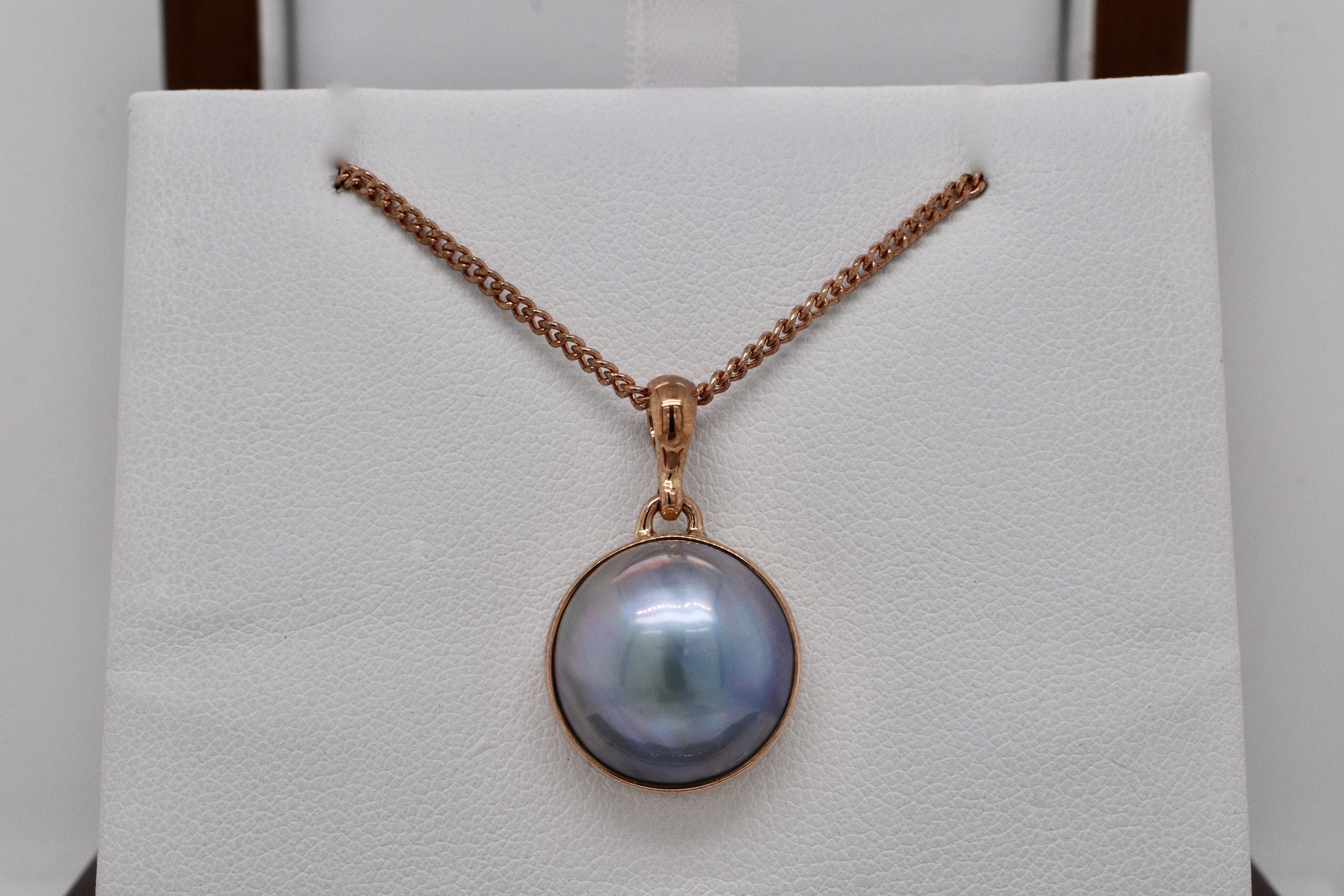 SOLD 9ct Rose Gold Black Mabe Pearl Pendant