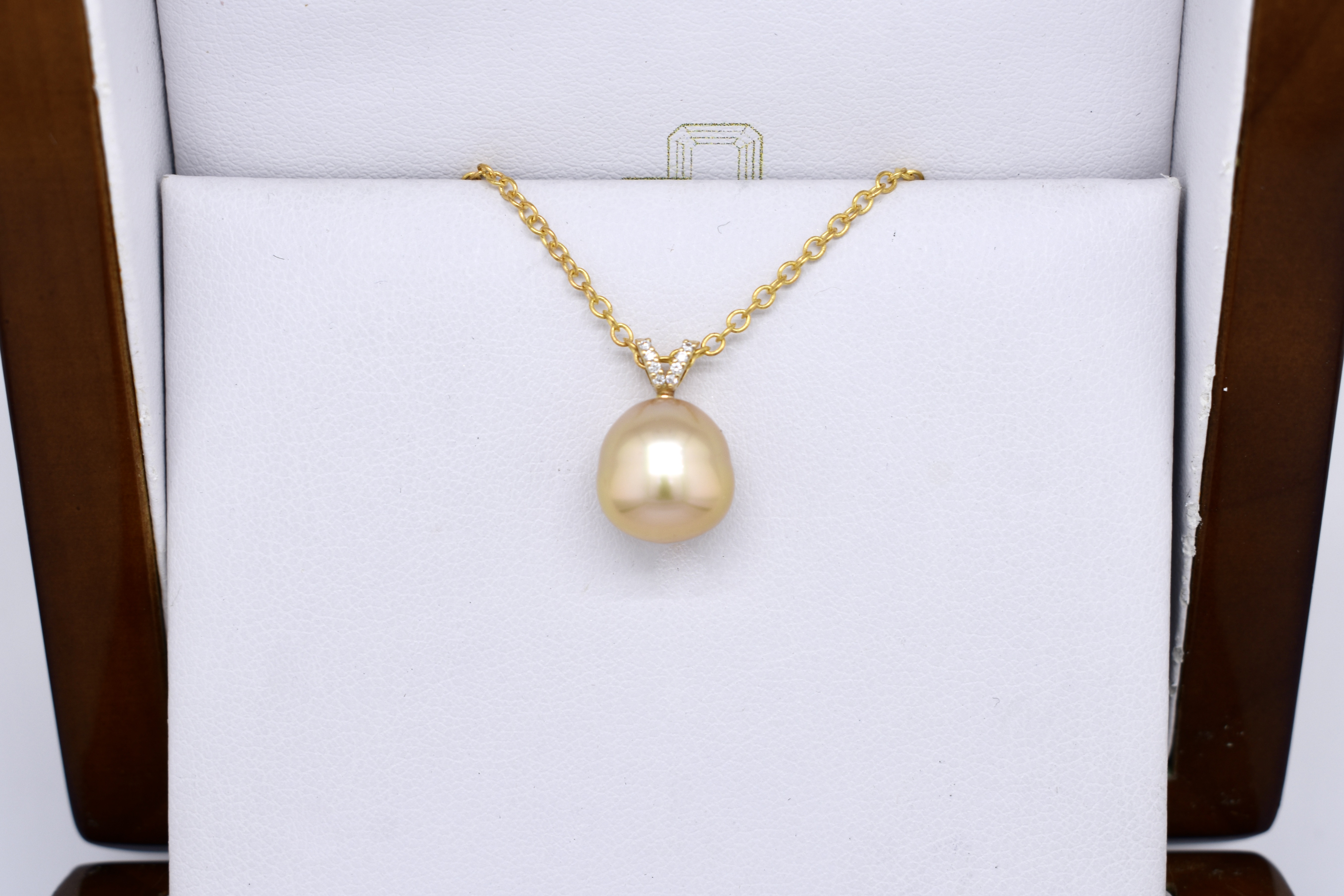 SOLD 18ct Yellow Gold Golden South Sea Pearl & 0.03ct Diamond Pendant