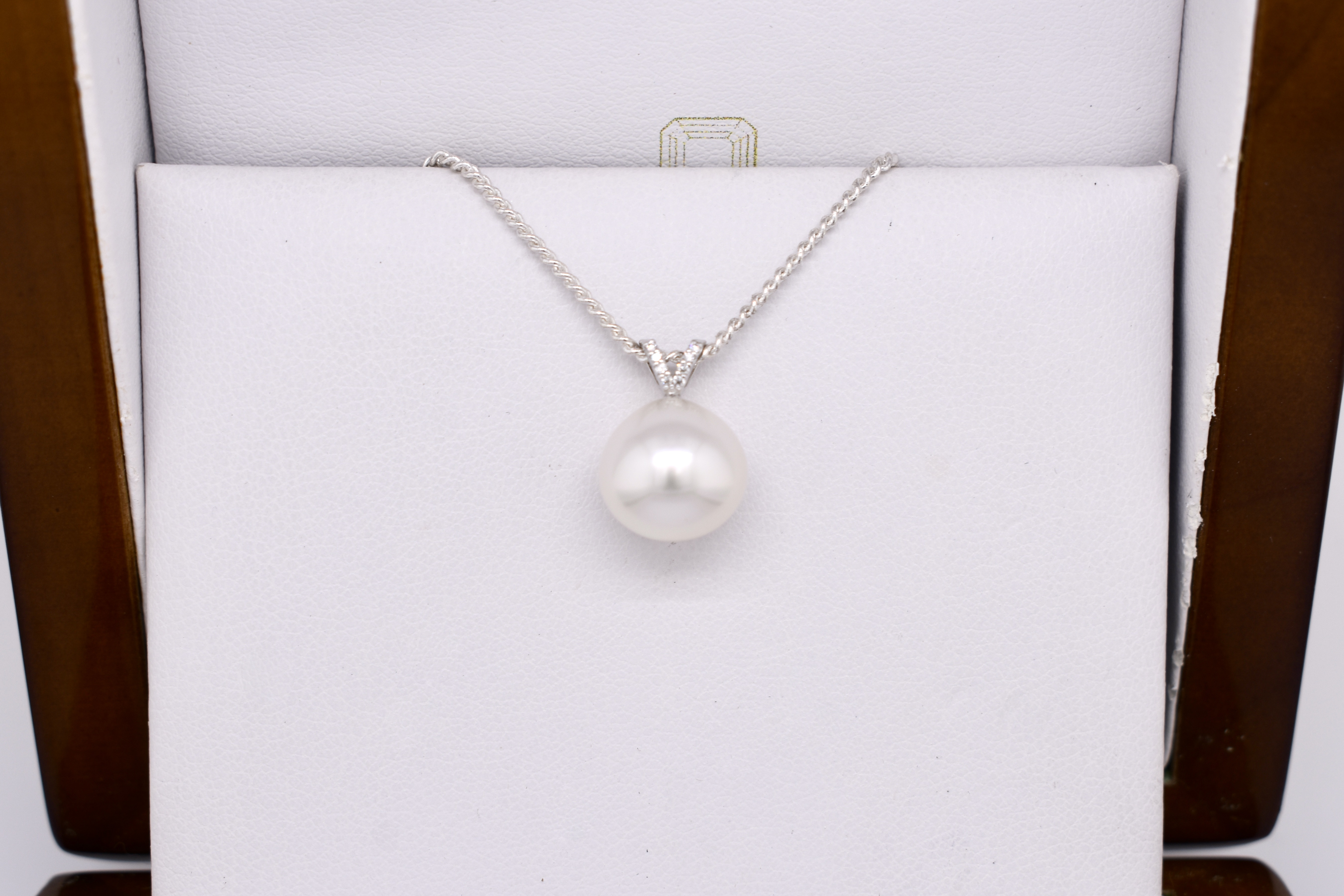 SOLD 18ct White Gold South Sea White Pearl & 0.03ct Diamond Pendant