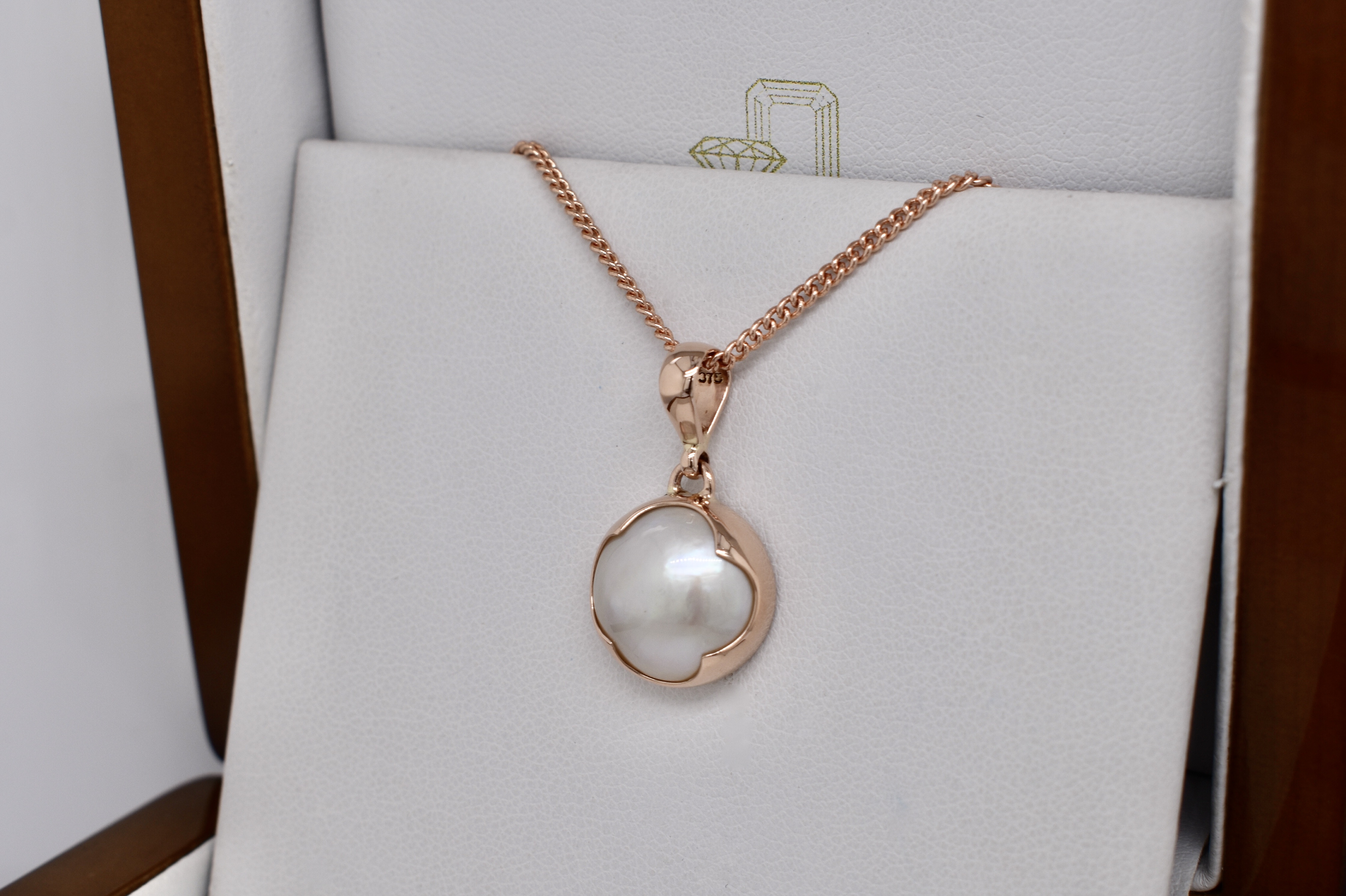 SOLD 9ct Rose Gold White Mabe Pearl Pendant