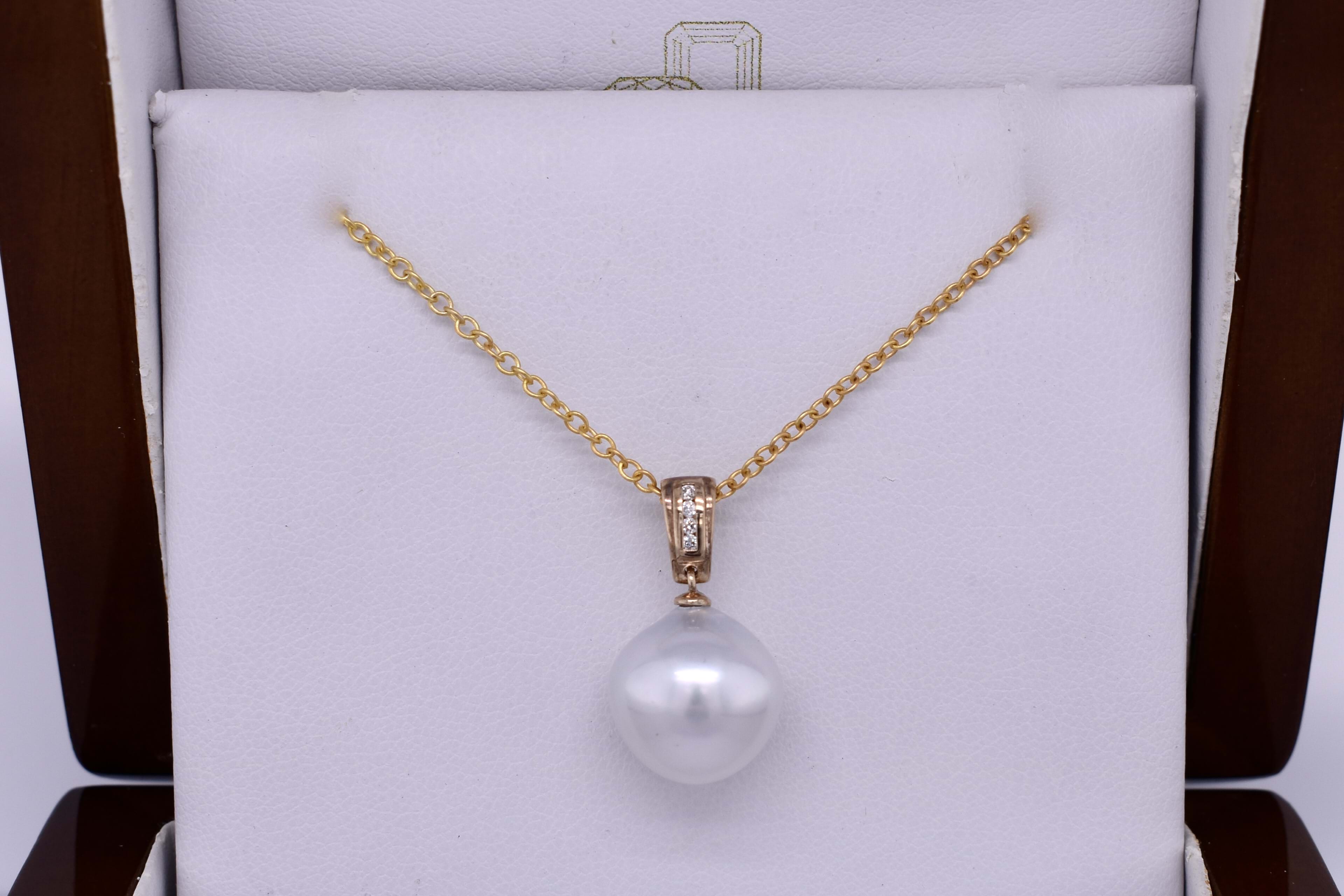 SOLD 18ct Yellow Gold 12.5-13mm South Sea Pearl & 0.03ct Diamond Pendant