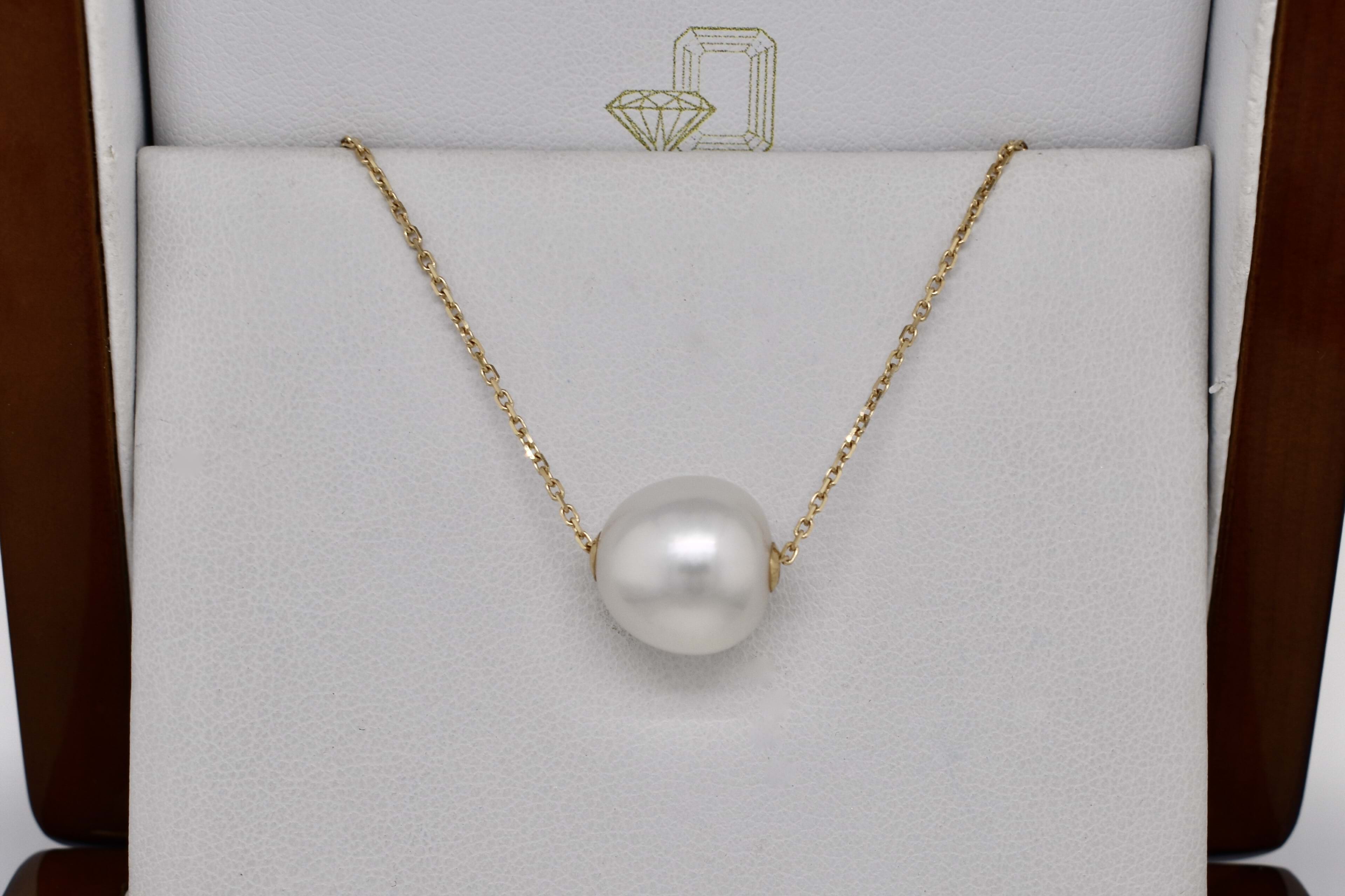 SOLD 18ct Yellow Gold South Sea White Pearl Necklet with 50cm (Adj) Chain