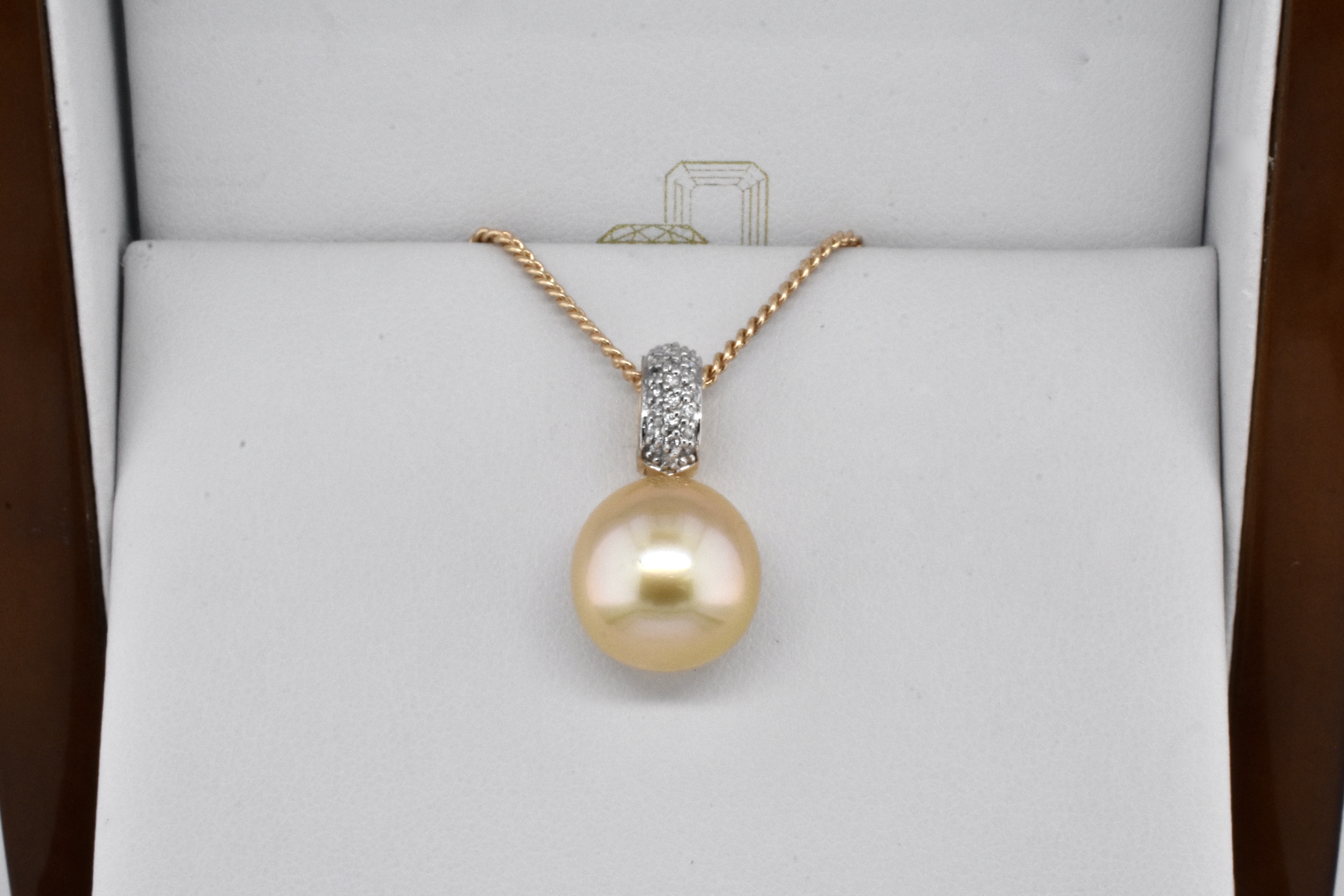 SOLD 9ct Yellow Gold 11.5-12mm Golden South Sea Pearl & Diamond Pendant