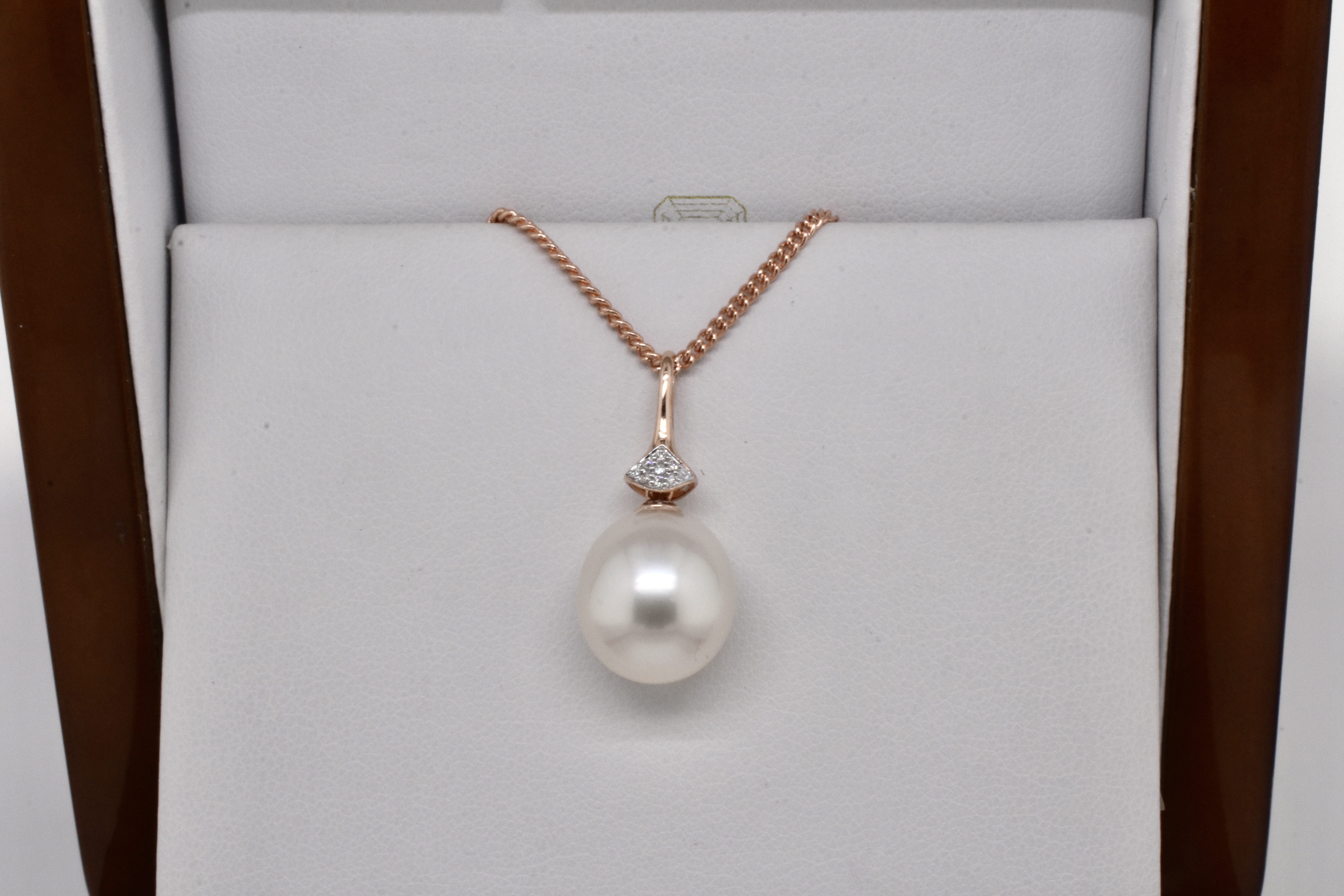 SOLD 9ct Rose Gold 11-12mm White South Sea Pearl & Diamond Pendant