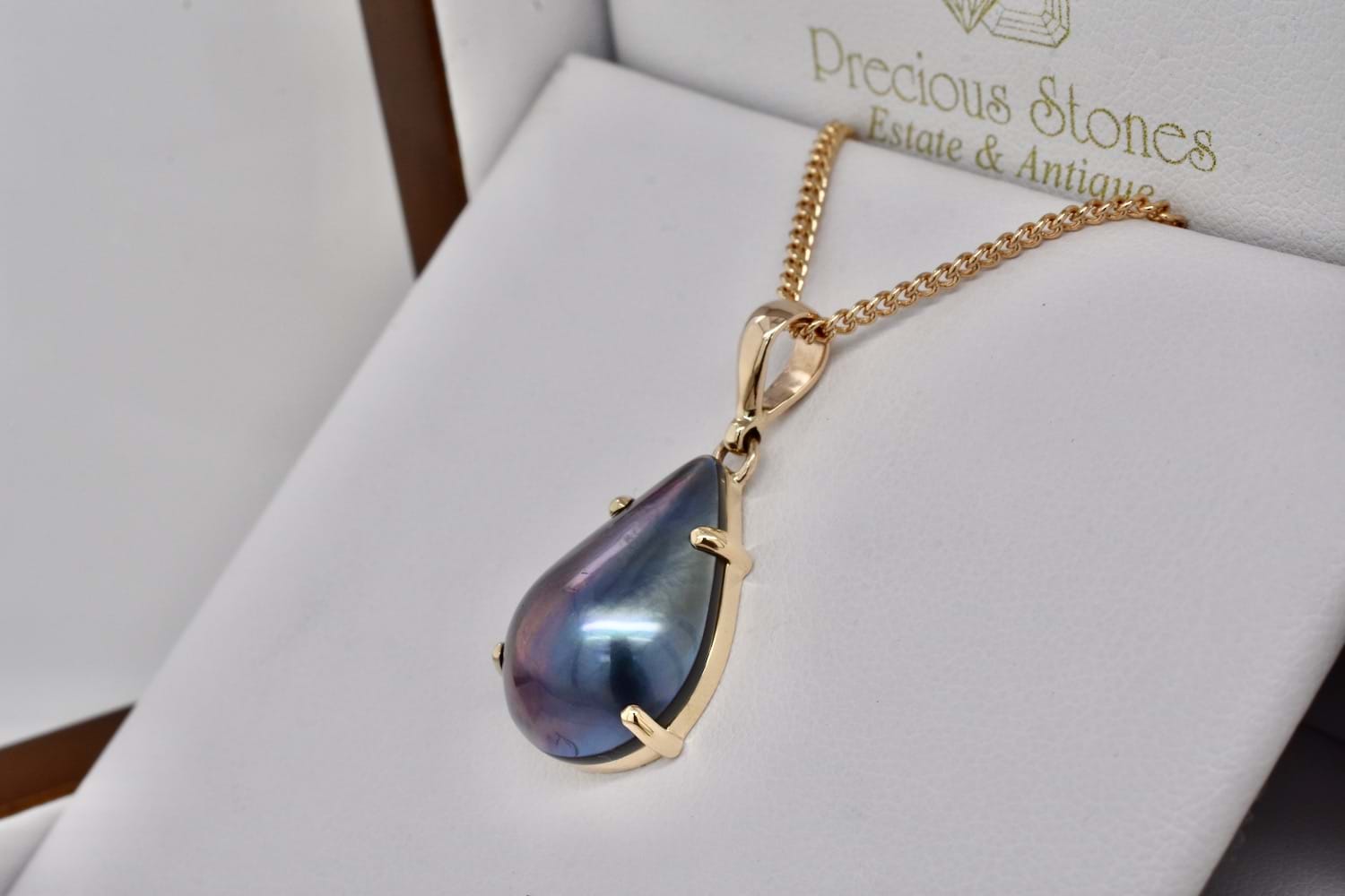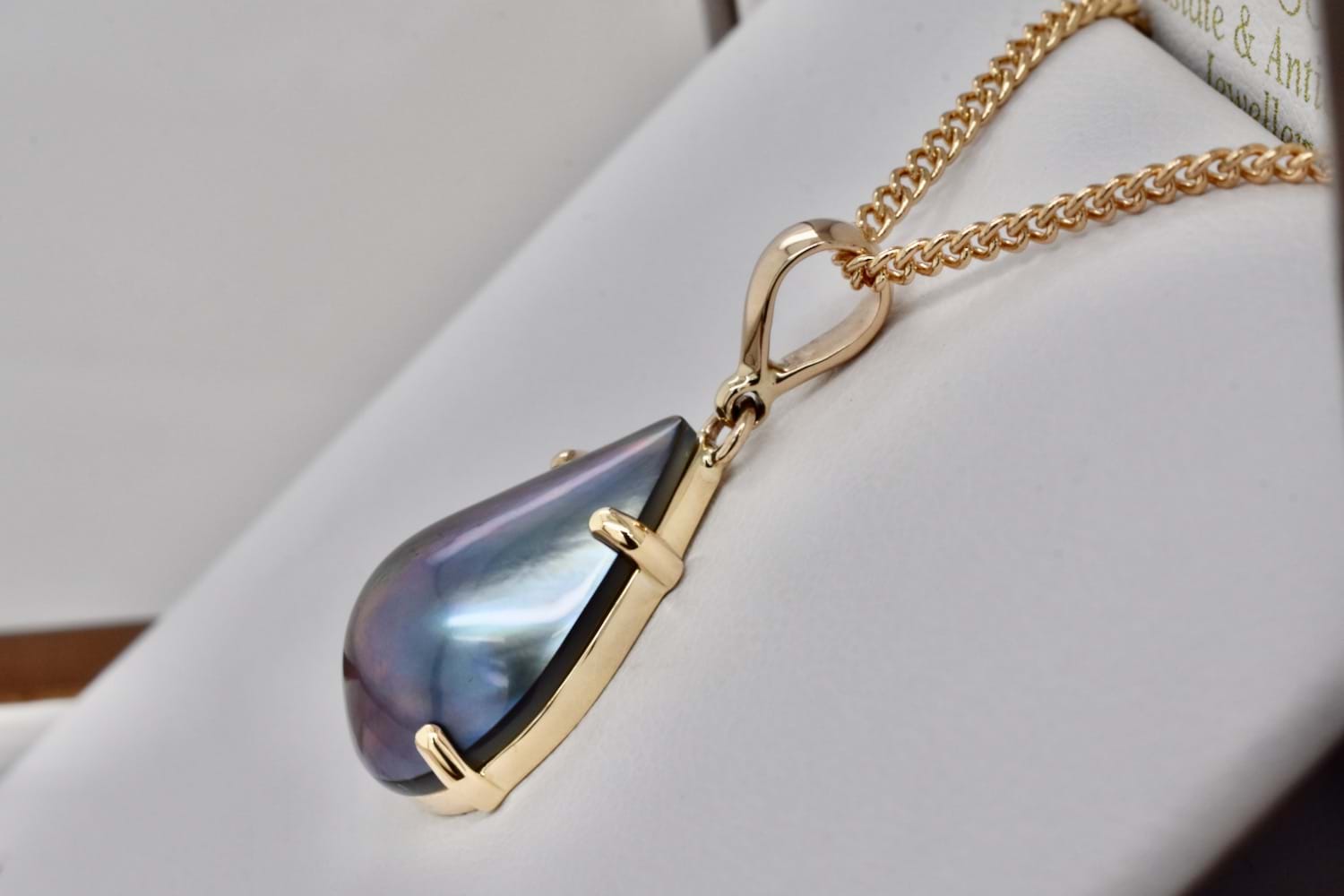 Handmade 9ct Yellow Gold Pearshape Blue Mabe Pearl Pendant