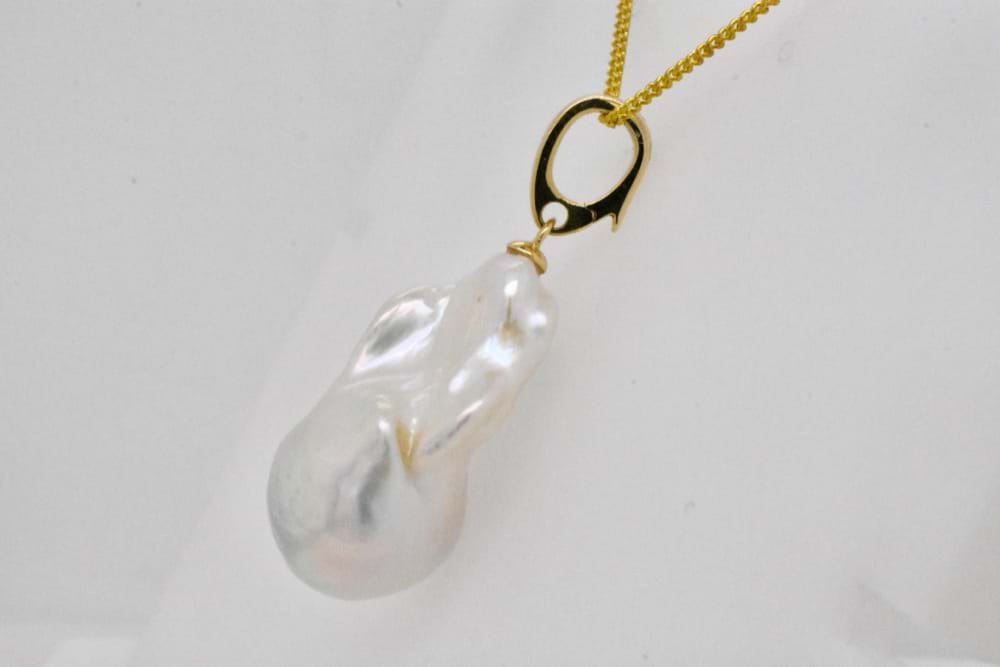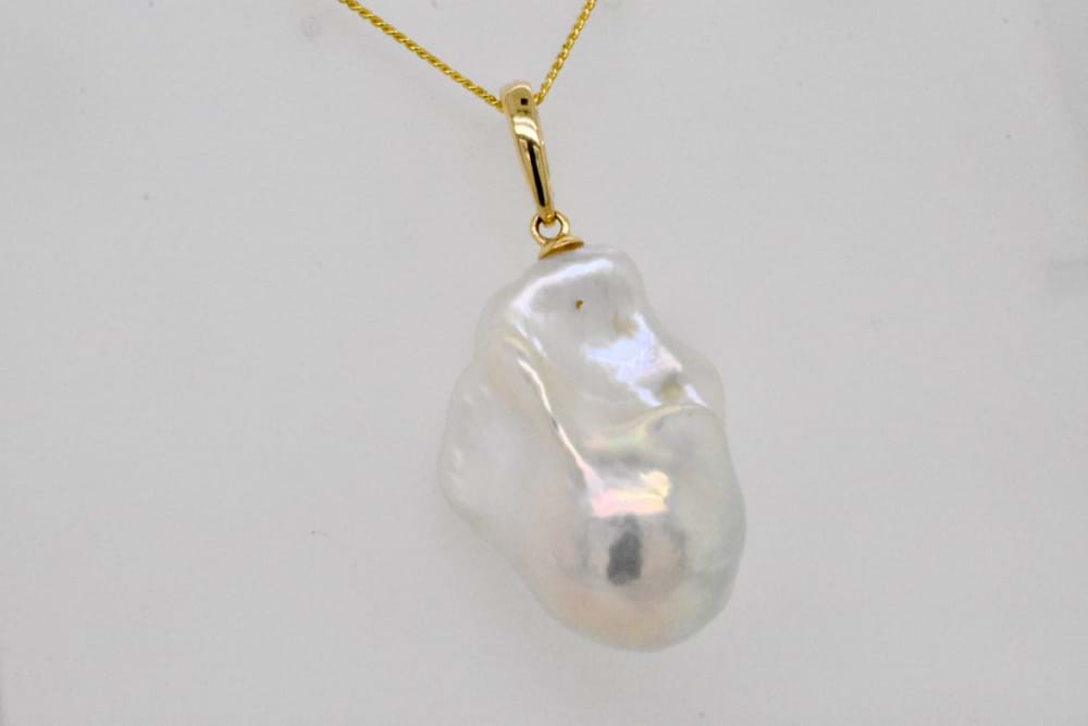 Fabulous baroque freshwater pearl measuring 15-16mm with a good lustre set onto an 18ct yellow gold enhancer bale fitting.