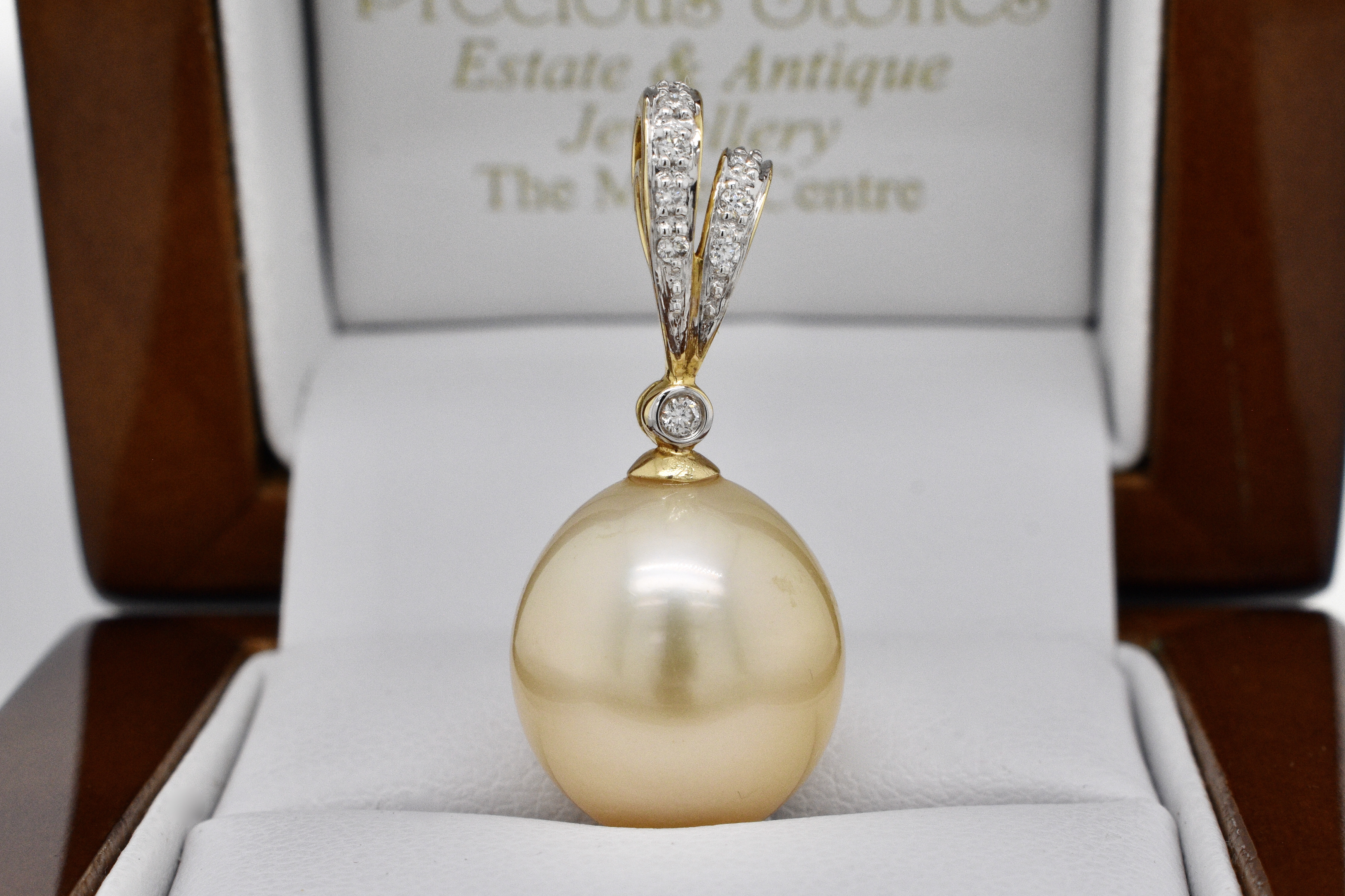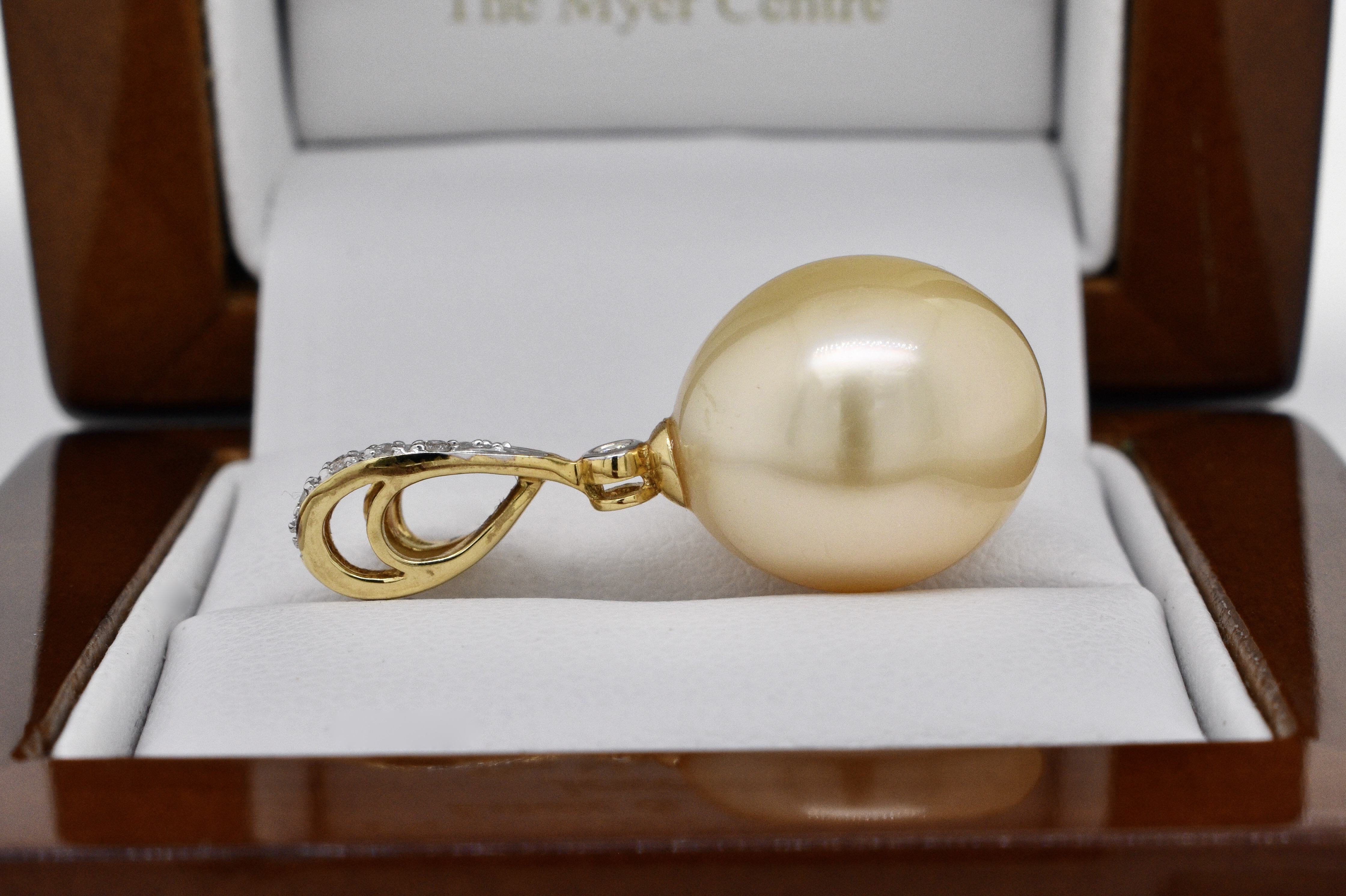 18ct Golden South Sea Pearl 13-13.5mm & Diamond Pendant