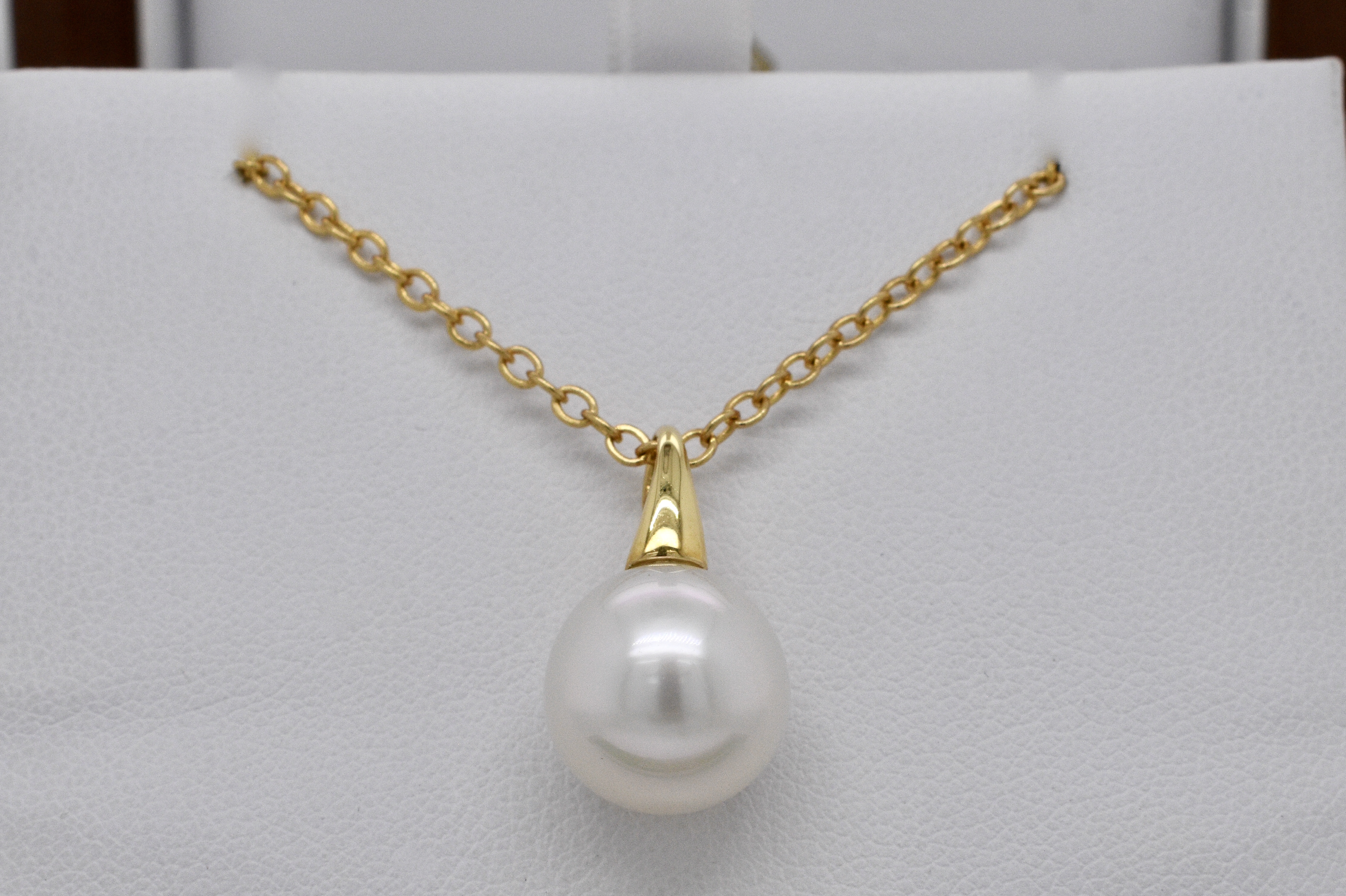 Crafted in 18ct yellow gold is this lovely 11.5 - 12 mm white South Sea pearl pendant. Matching earrings available 20255657