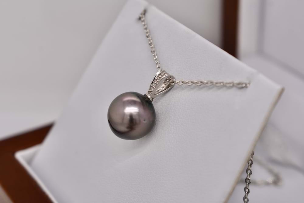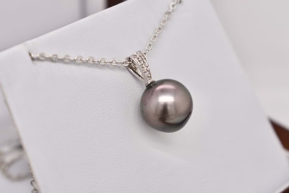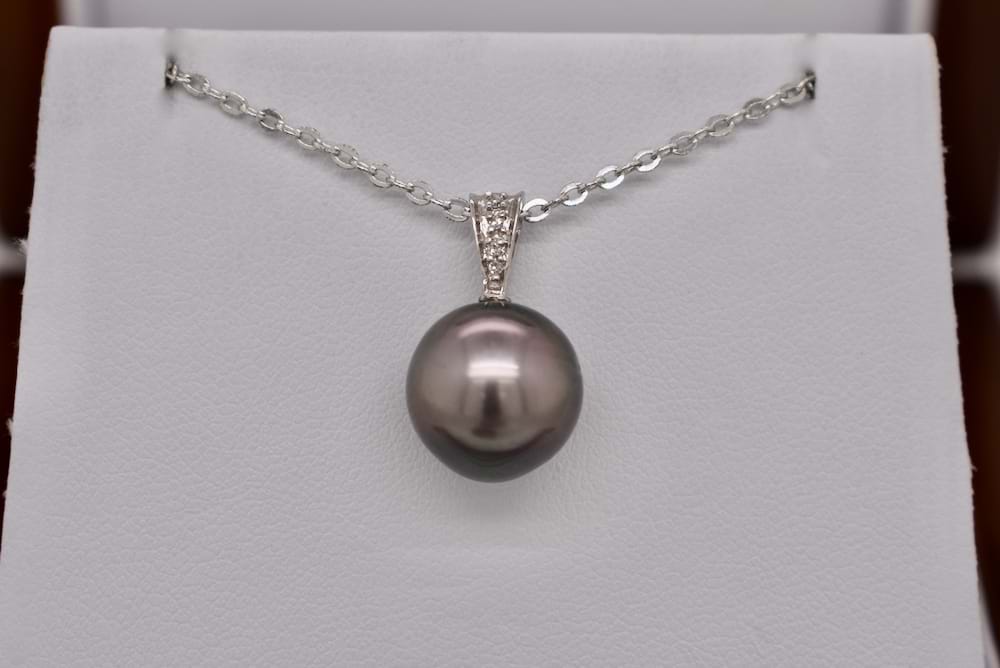 SOLD 18ct White Gold 11.77mm Tahitian Pearl & 0.02ct Diamond Pendant