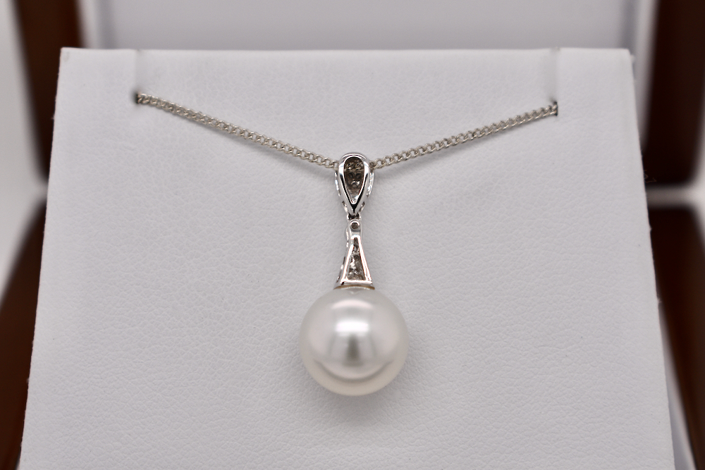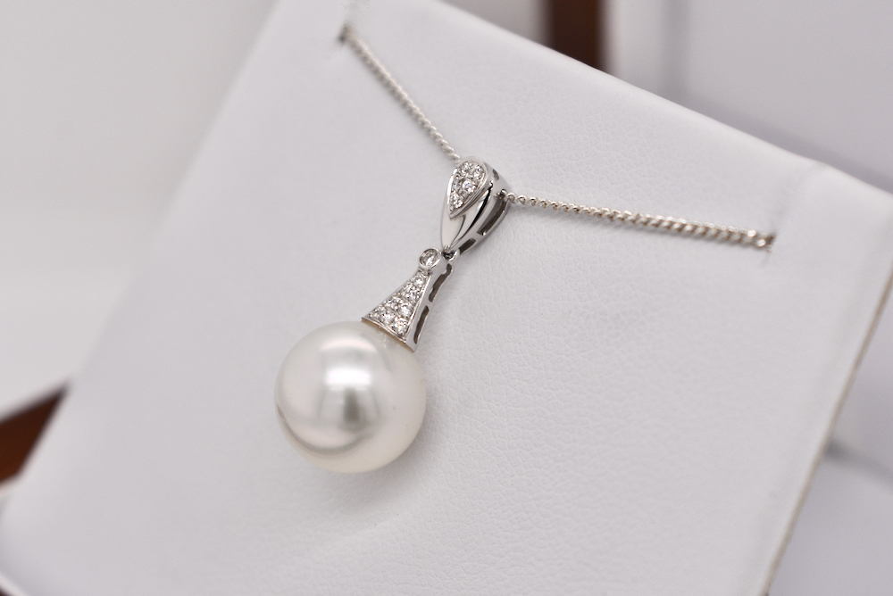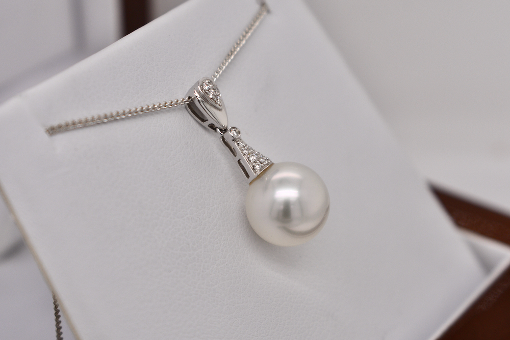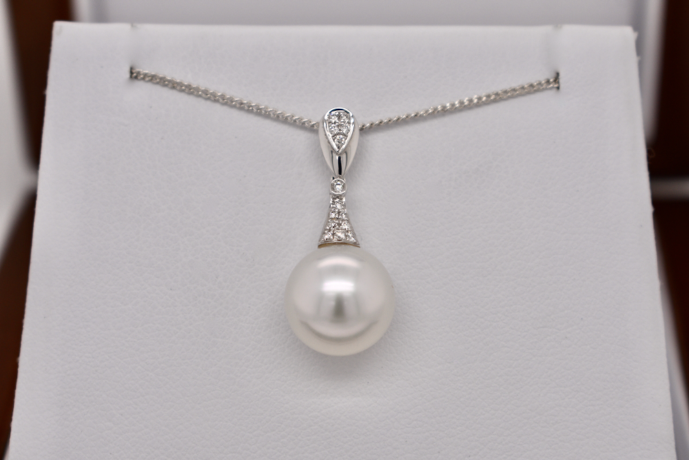 SOLD 18ct White Gold 11mm South Sea Pearl & 0.08ct Diamond Pendant