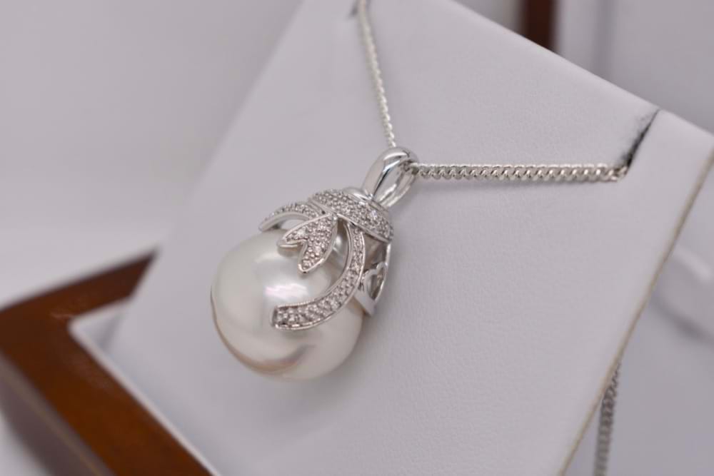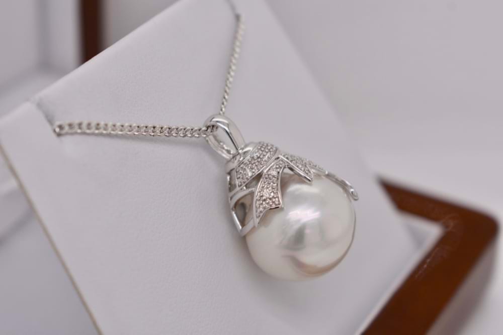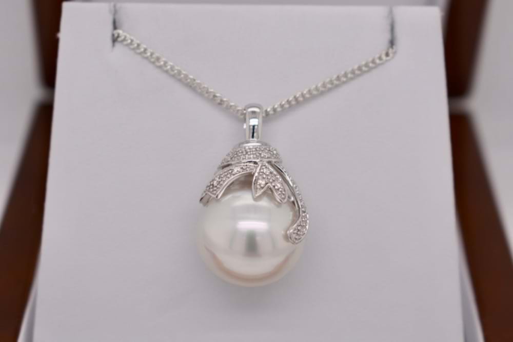 SOLD 9ct White Gold Diamond & South Sea Pearl Pendant