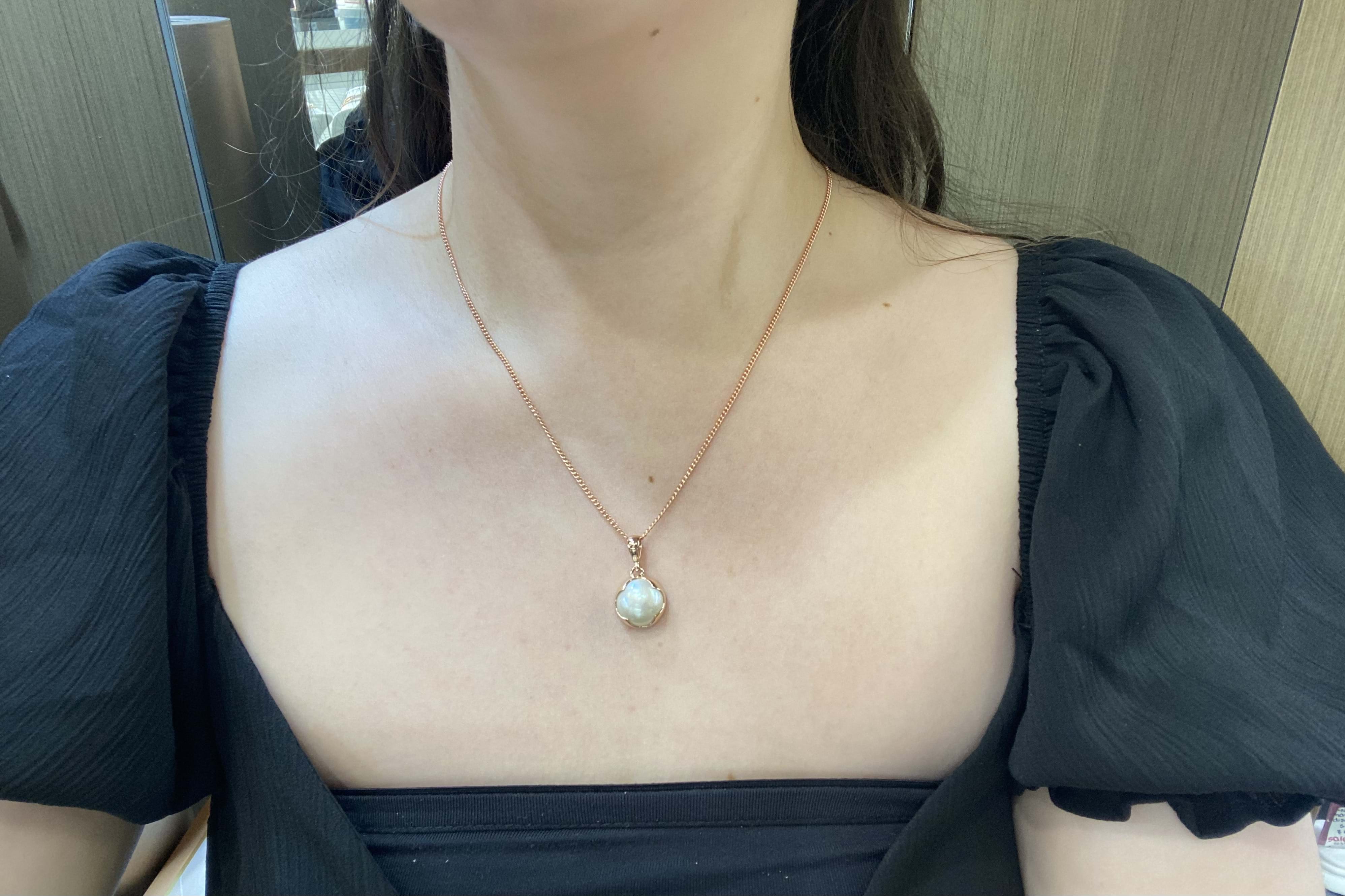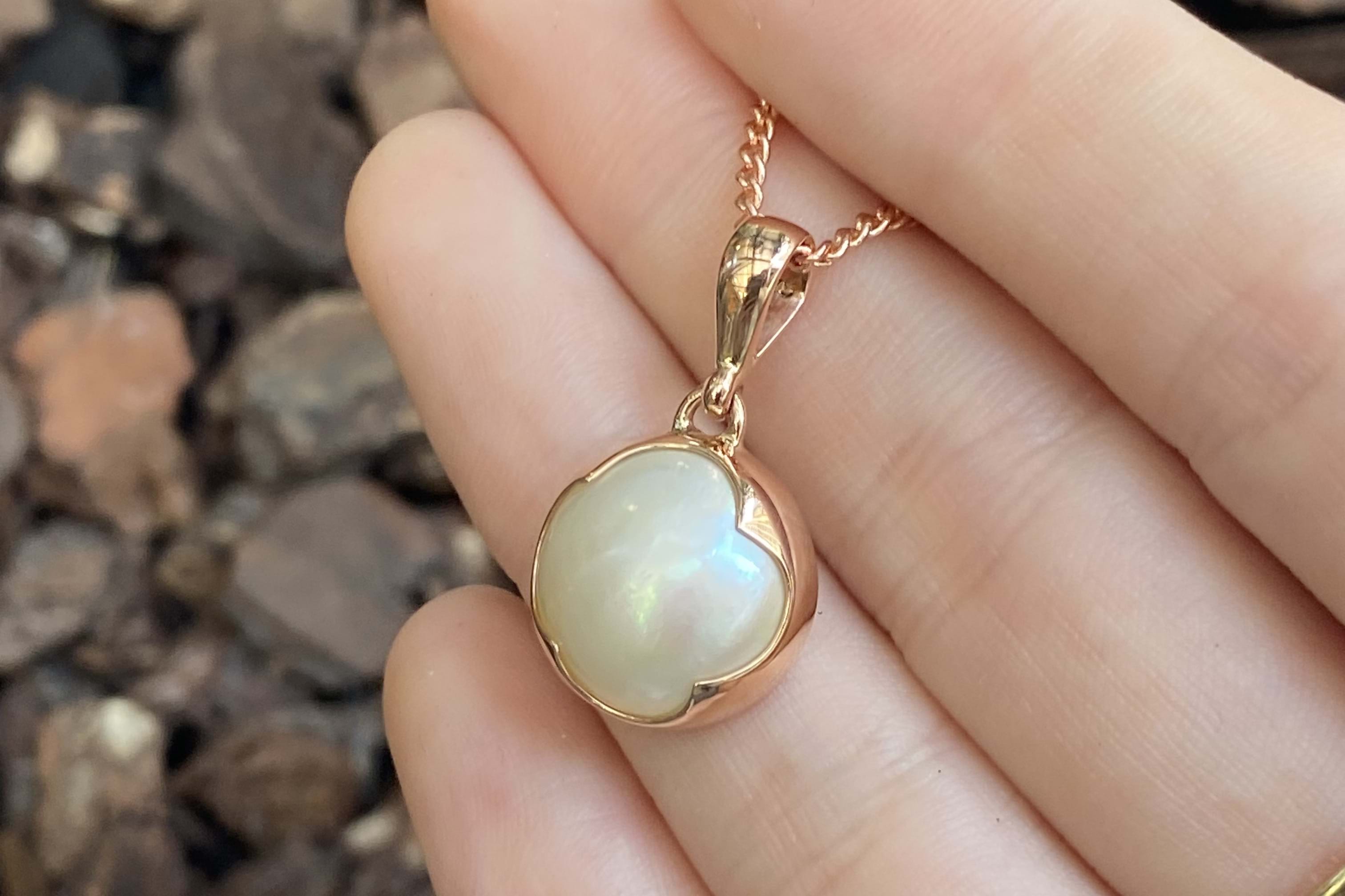 SOLD Handmade 9ct Rose Gold 14mm White Mabe Pearl Scalloped Bezel Pendant