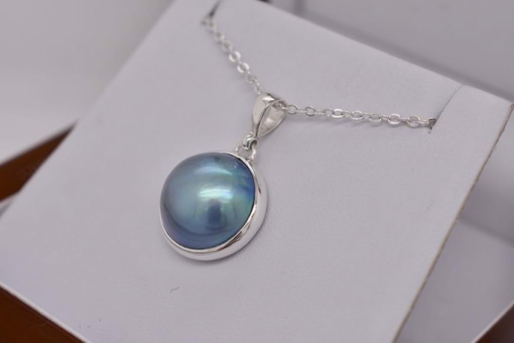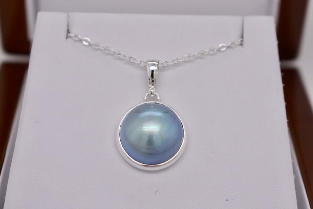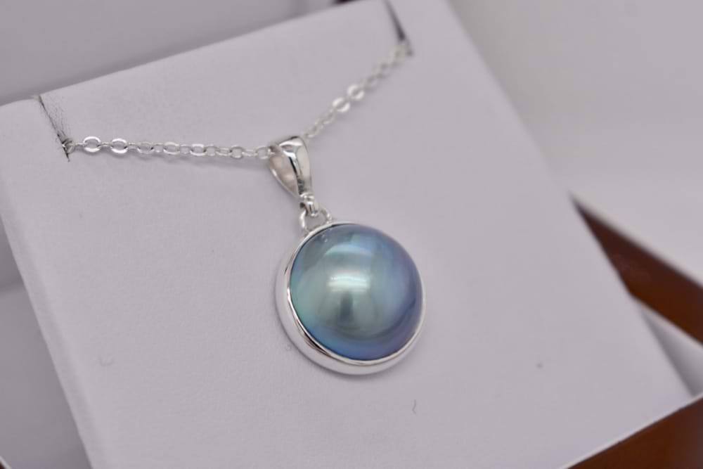 Sterling silver pendant bezel set with a 17mm black Mabe pearl. Chains are available for separate purchase