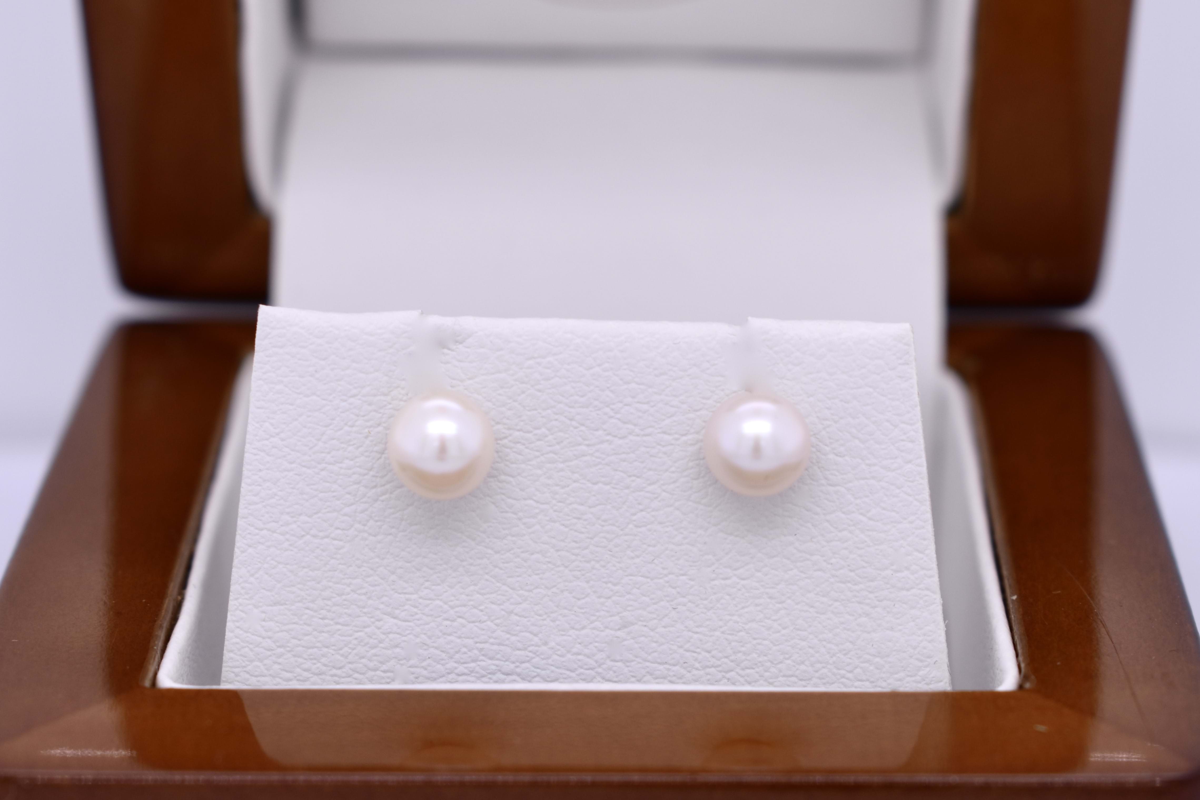 SOLD 9ct Yellow Gold White Round 5.9mm Akoya Studs