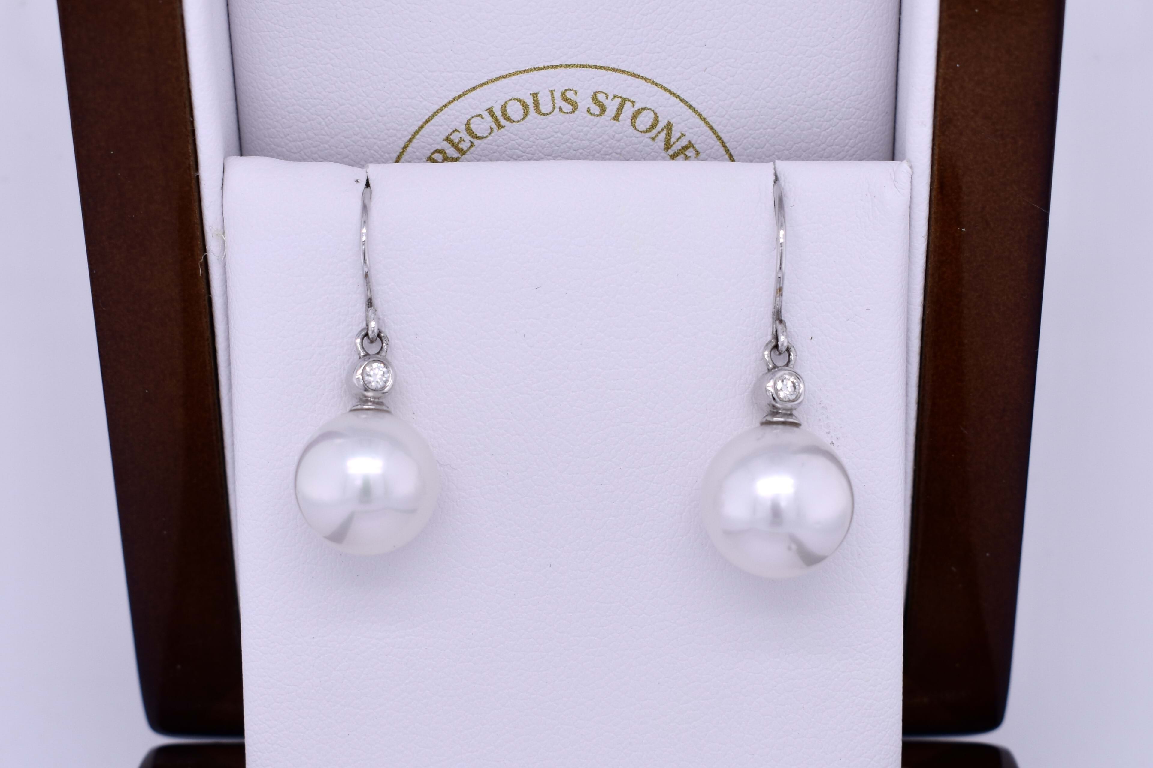 SOLD18ct White Gold South Sea Pearl & 0.06ct Diamond Drop Earrings