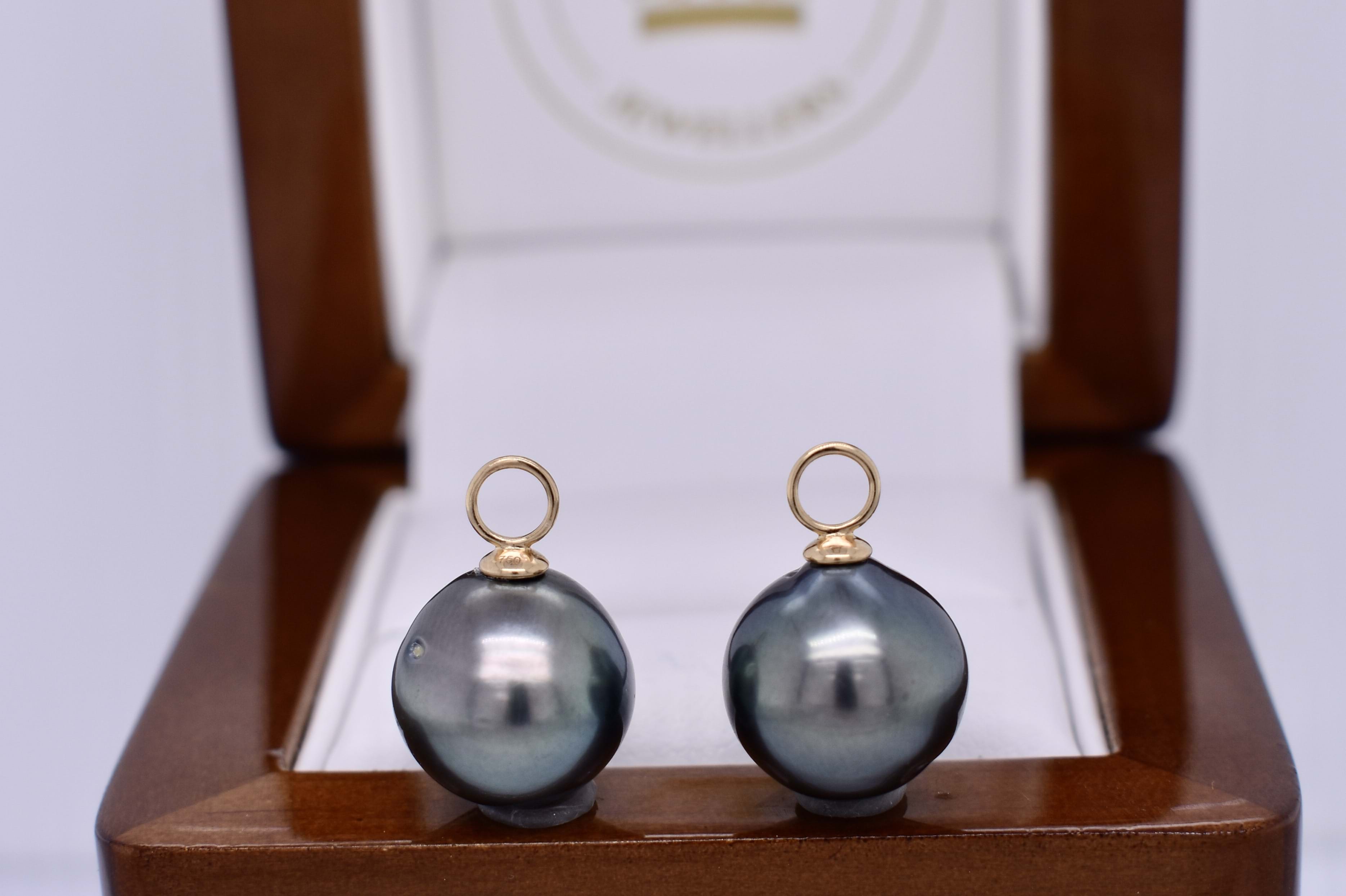 SOLD 18ct Yellow Gold 13.5-14mm Round Tahitian Black Pearl Earring Enhancers