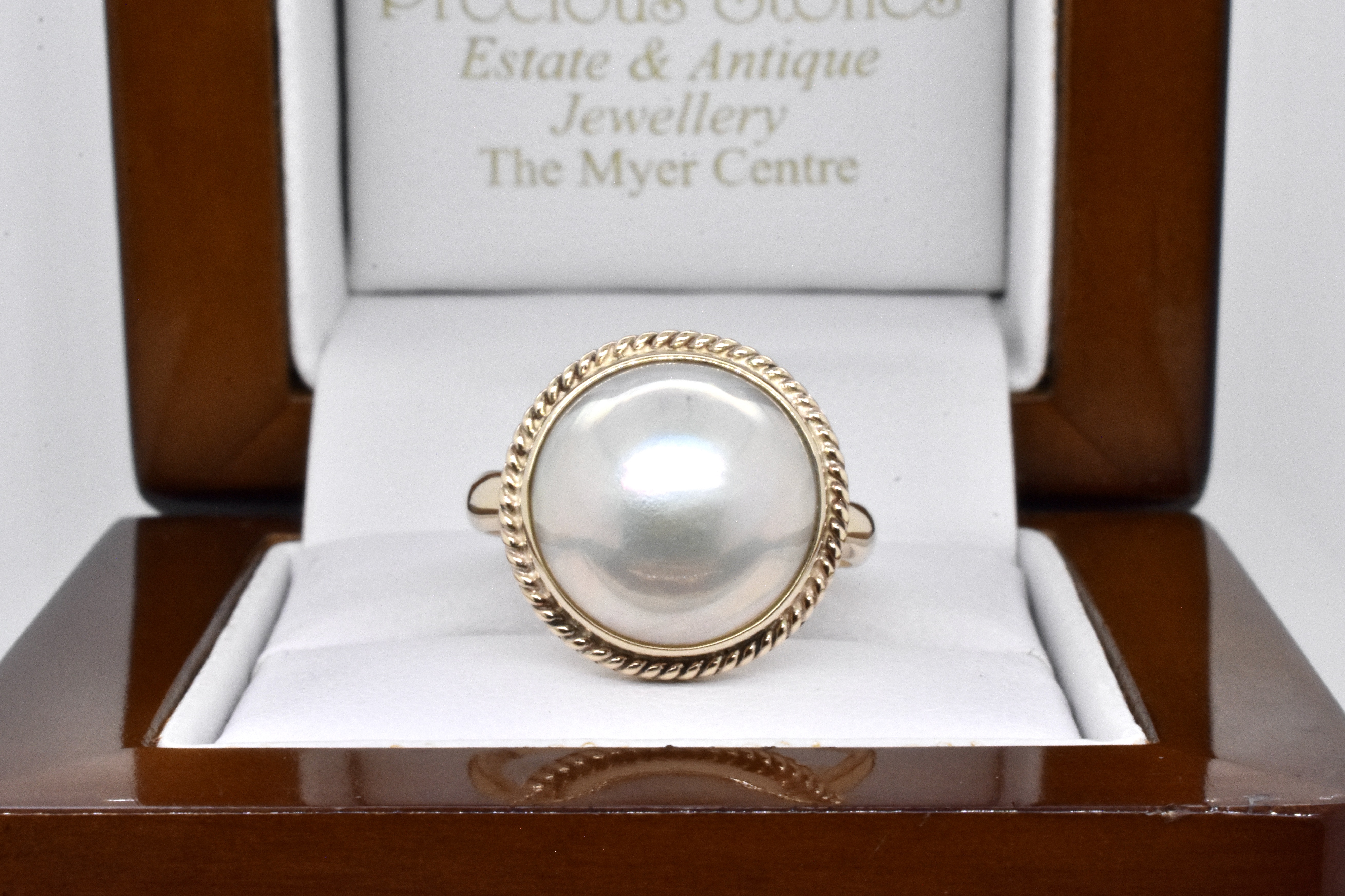 SOLD 9ct Yellow Gold 15mm White Mabe Pearl Ring
