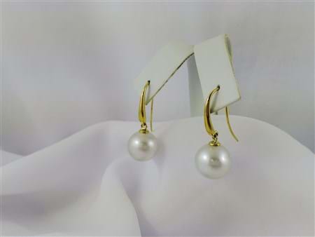 In 9ct yellow gold these simplistic shepherd hook drops feature white South Sea Pearls measuring 12.5-13mm.