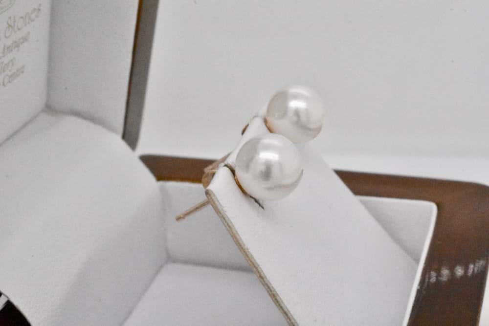 Gorgeous 8-8.5mm white south sea pearls set onto high quality 9ct yellow gold stud posts with butterfly fittings