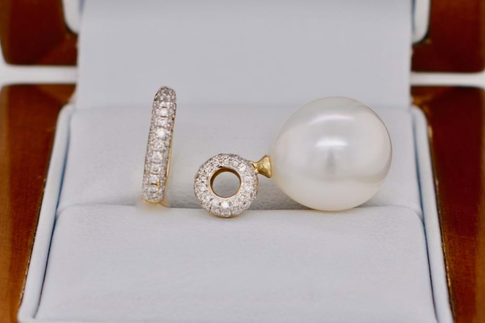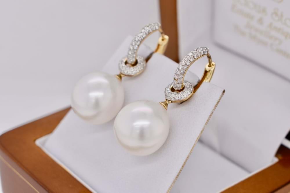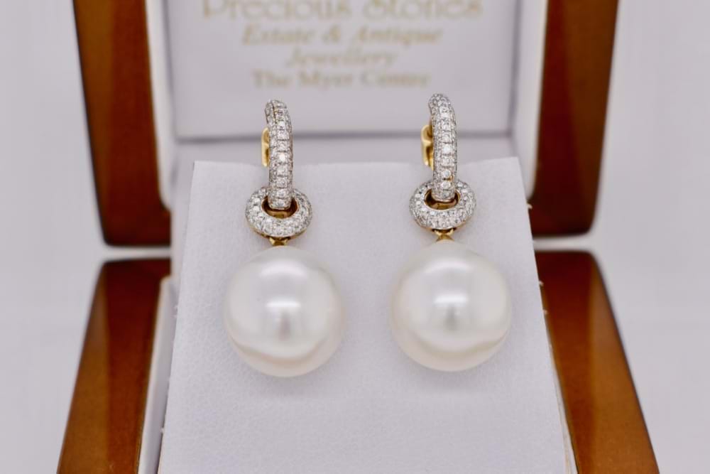 SOLD 18ct 0.73ct Diamond Huggies & South Sea Pearl Drops