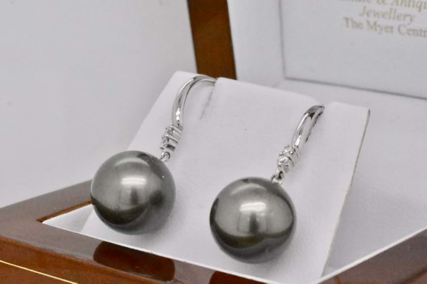 SOLD 18ct 11.5-12mm Tahitian Pearl Earrings