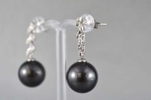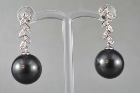 18ct White Gold 12.5-13mm Tahitian Pearl & Diamond Drops