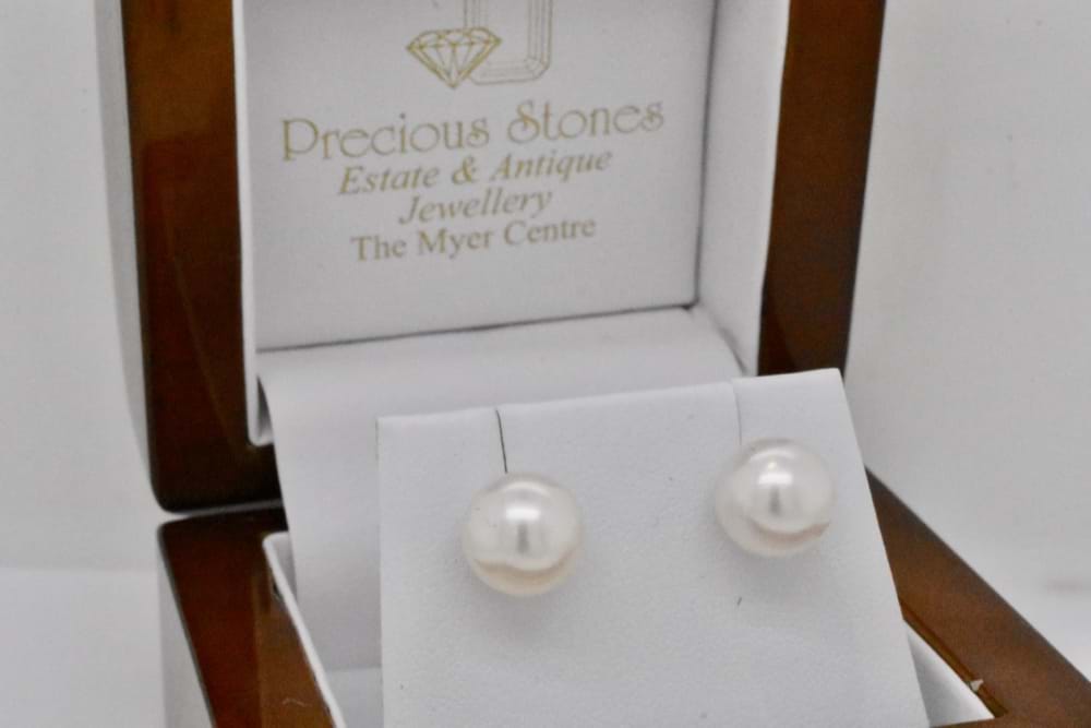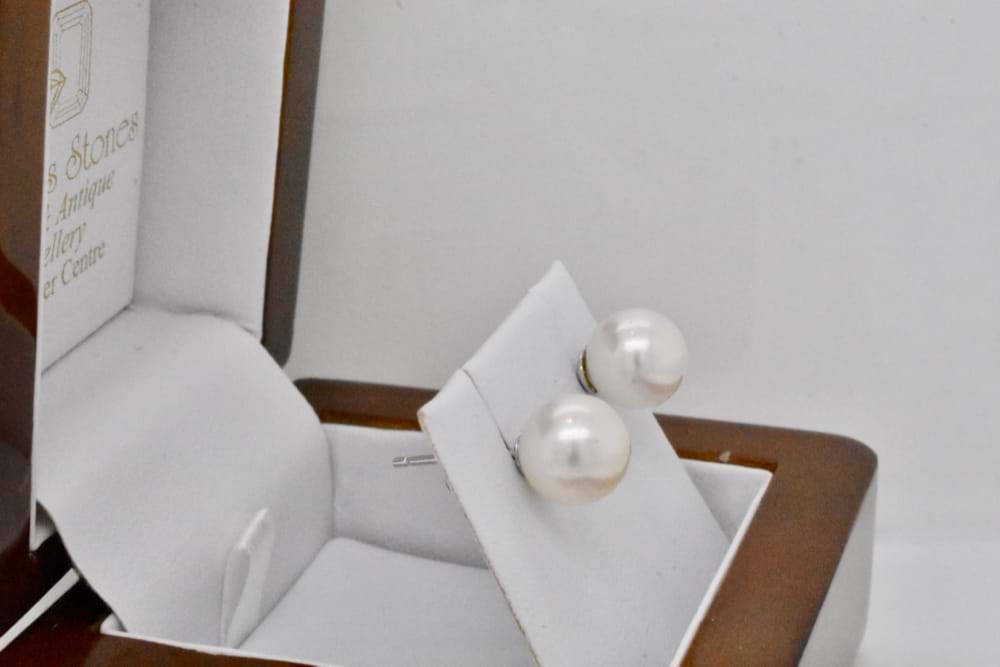 SOLD 9ct White Gold 8.5-9mm White South Sea Pearl Studs